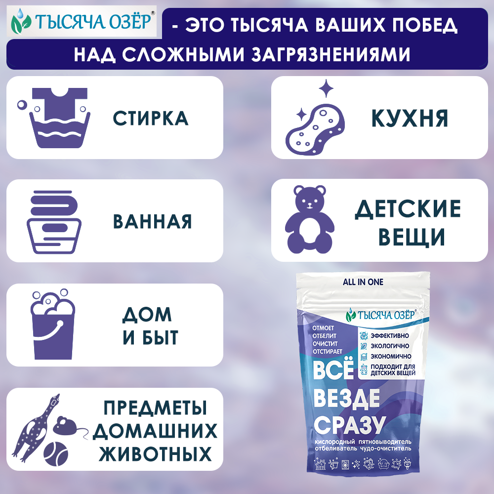 Отбеливатель-пятновыводитель ТЫСЯЧА озер 500 г интересное: