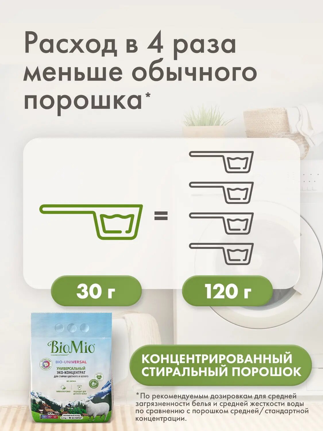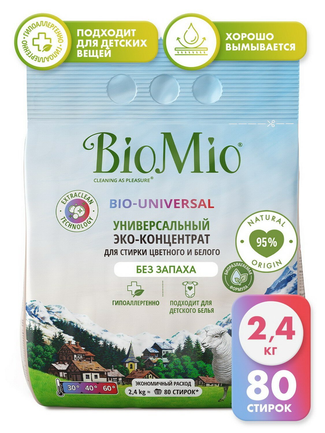 Стиральный порошок автомат BioMio для цветного и белого , концентрат, без запаха, 2 400 г интересное: