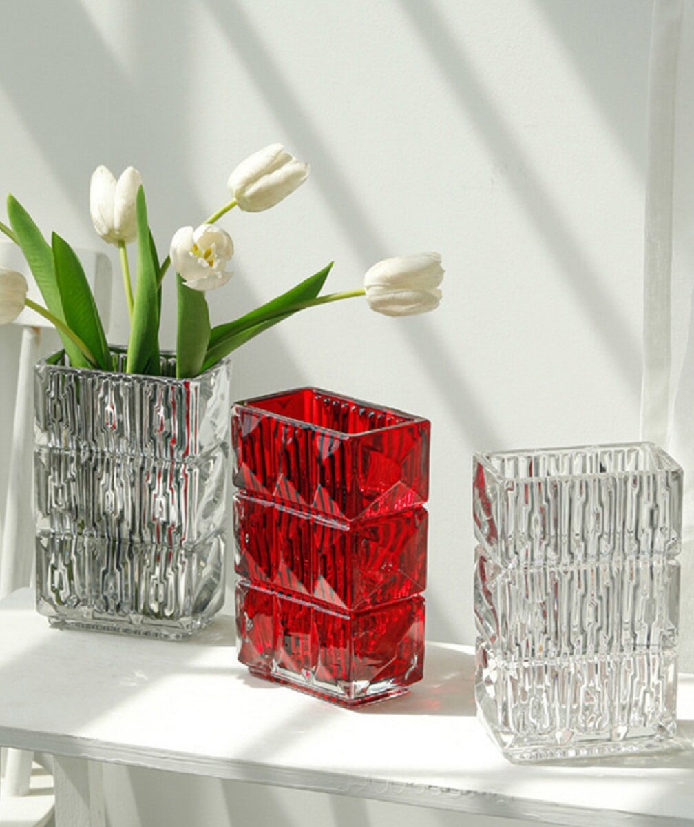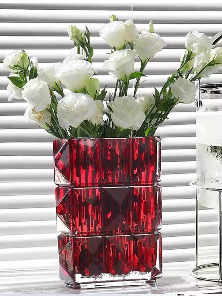 Купить Ваза настольная для цветов из хрустального стекла (вишневая)