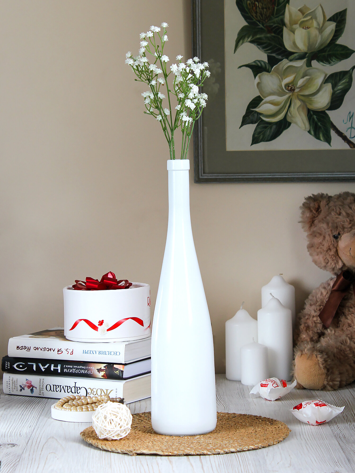 Ваза для цветов стекло, высокая, белая интересное: