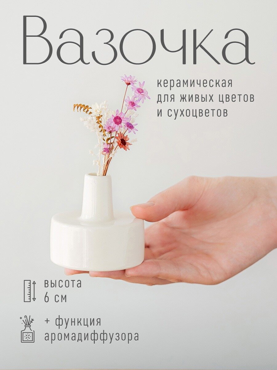 СохранитьМаленькая декоративная керамическая ваза для живых цветов и сухоцветов Decologic шайба интересное:
