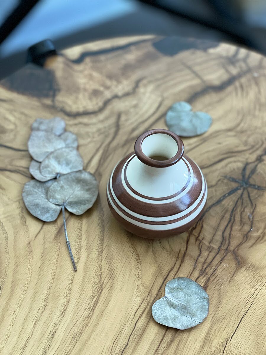 Купить Маленькая декоративная керамическая ваза для сухоцветов и живых цветов Decologic коричневая обводка