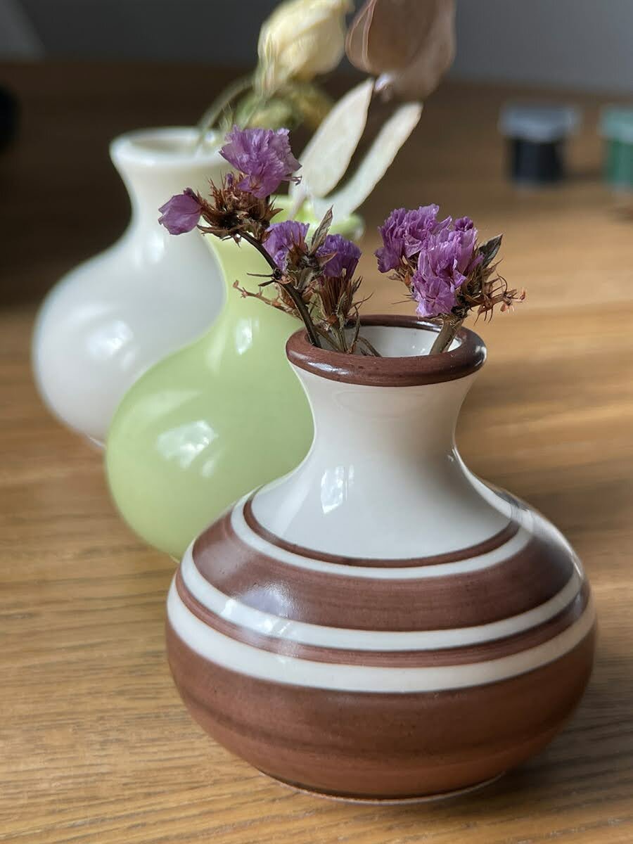 СохранитьМаленькая декоративная керамическая ваза для сухоцветов и живых цветов Decologic коричневая обводка интересное: