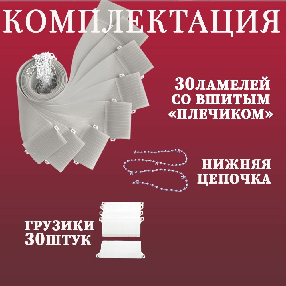 | Комплектация | ламели тканевые, грузики нижние, цепочка, инструкция |