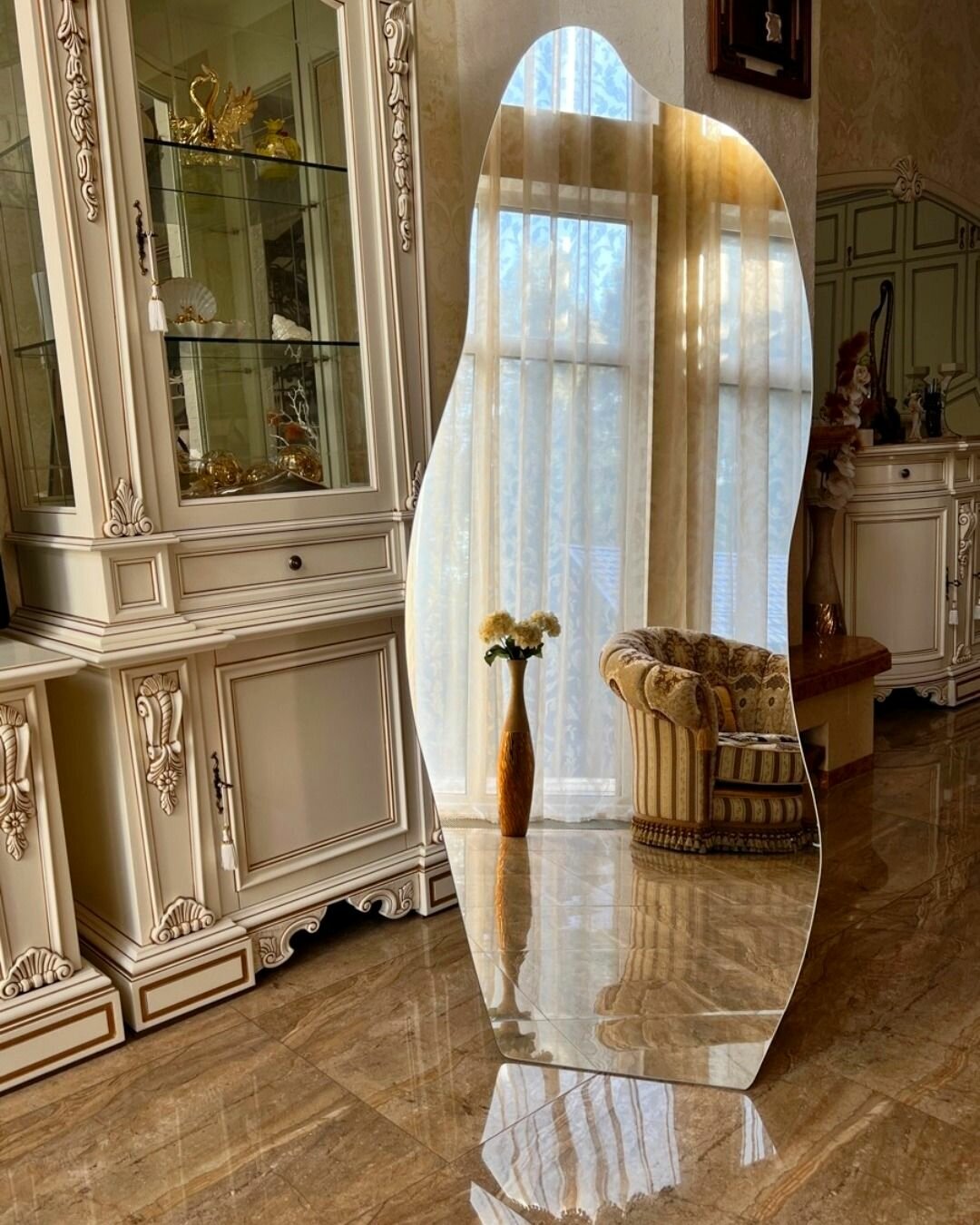 Зеркало напольное интерьерное в полный рост криволинейное с напольной подставкой "Stone" 170смх70см интересное: