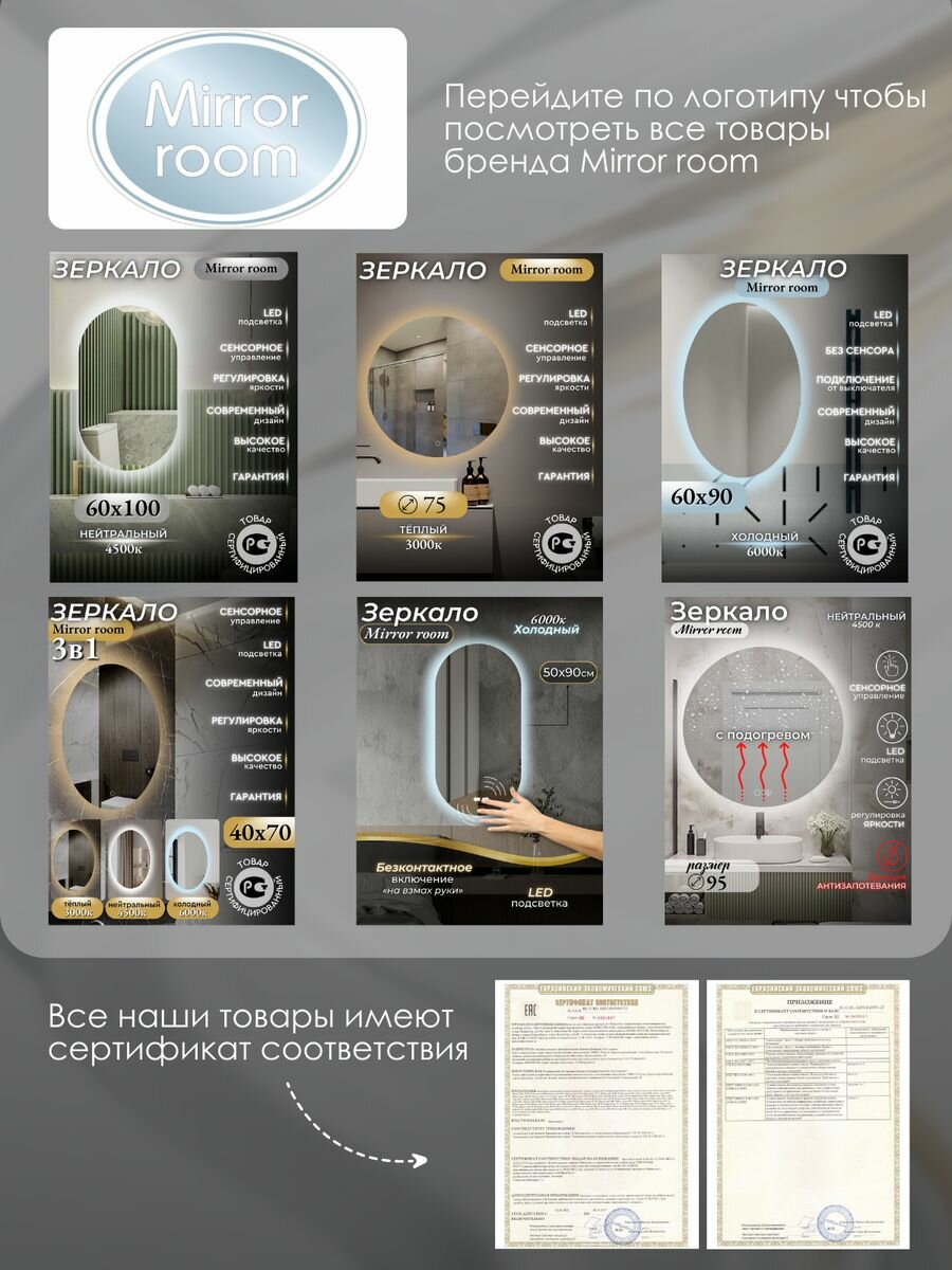 Зеркало для ванной 60 на 80 см. (закругленные углы) интересное: