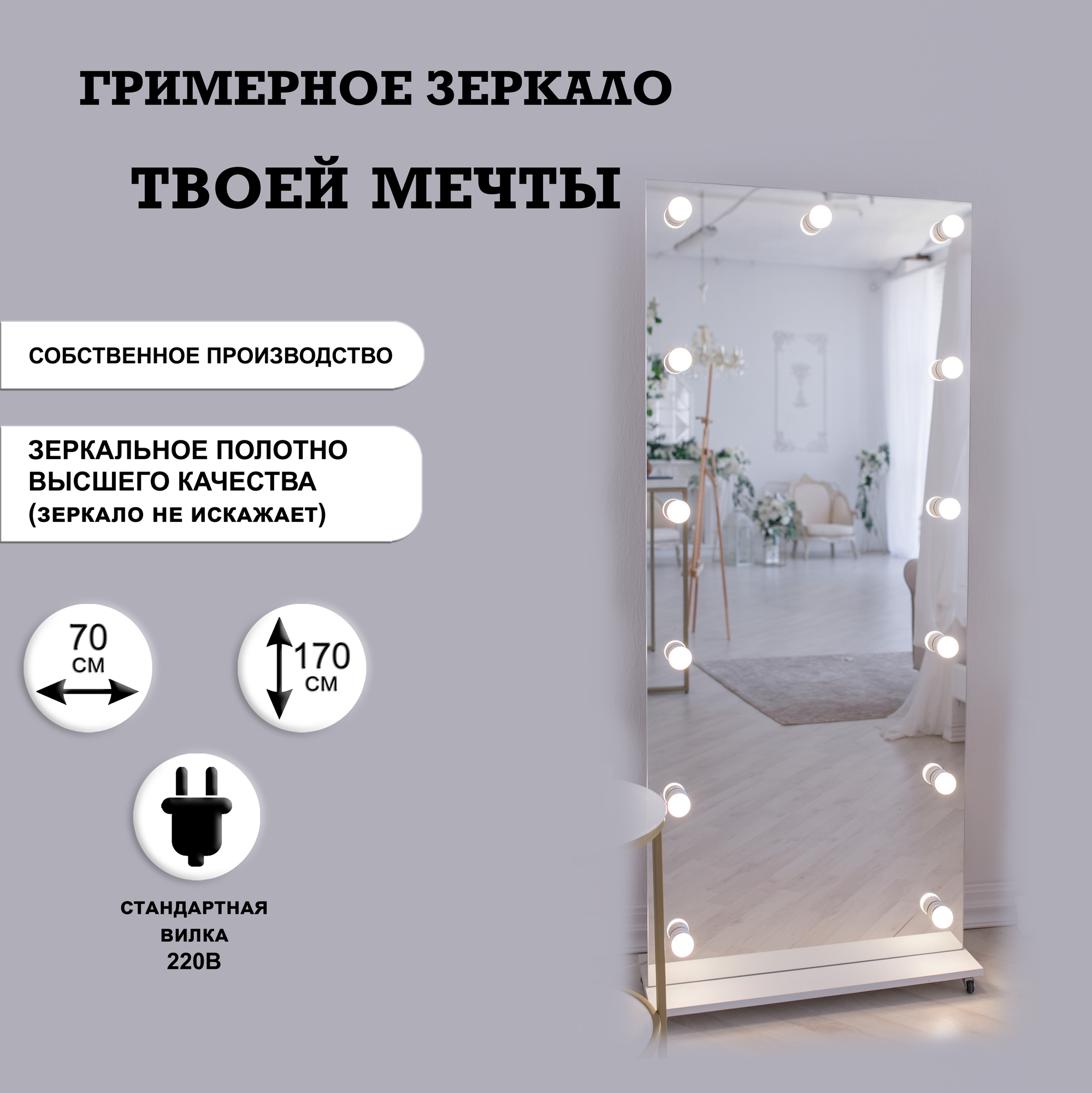 Гримерное зеркало на подставке 70см х 170см, без рамы / косметическое зеркало интересное:
