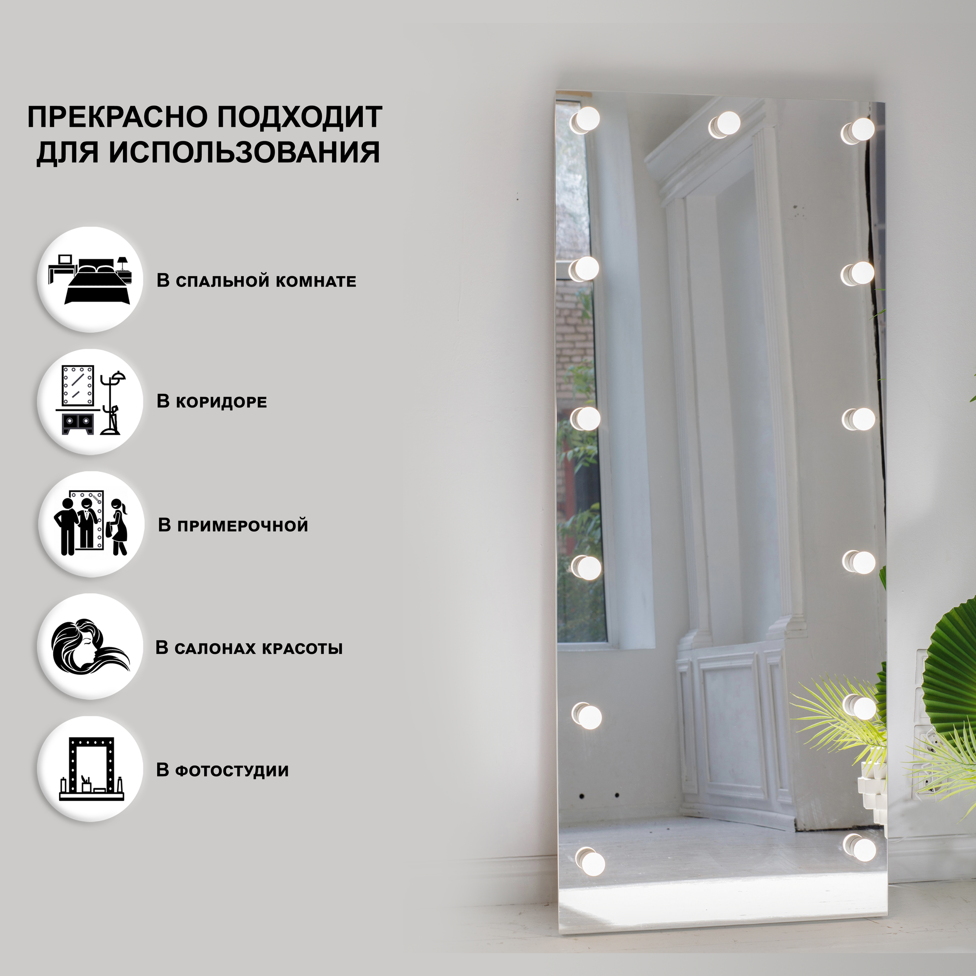 Гримерное зеркало GM Mirror 70см х 165см, без рамы / косметическое зеркало интересное: