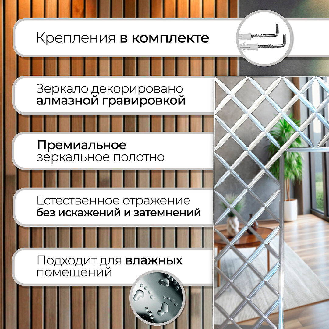| Комплектация | зеркало, крепления, упаковка, инструкция |