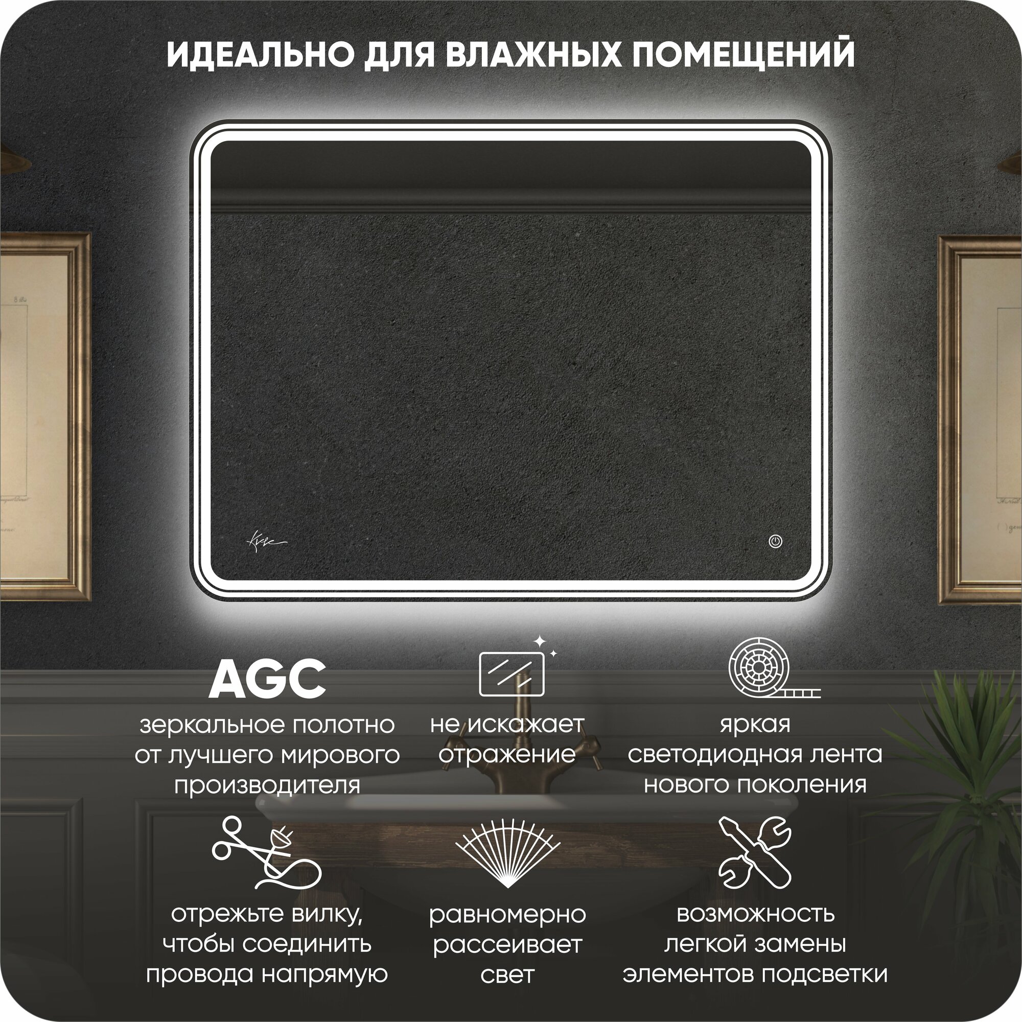 Купить Зеркало в ванную KVVgroup Malta 80х70 см с фронтальной LED-подсветкой (настенное для ванной, влагостойкое с сенсорным управлением, интерьерное, прямоугольное, холодная подсветка 6000К)