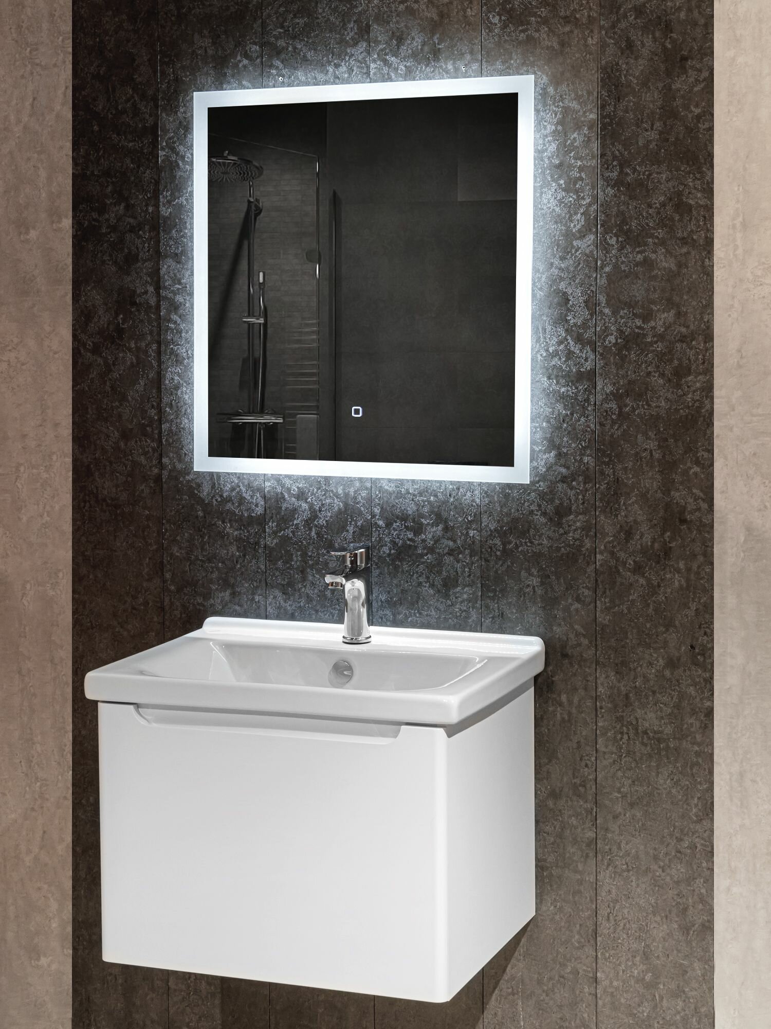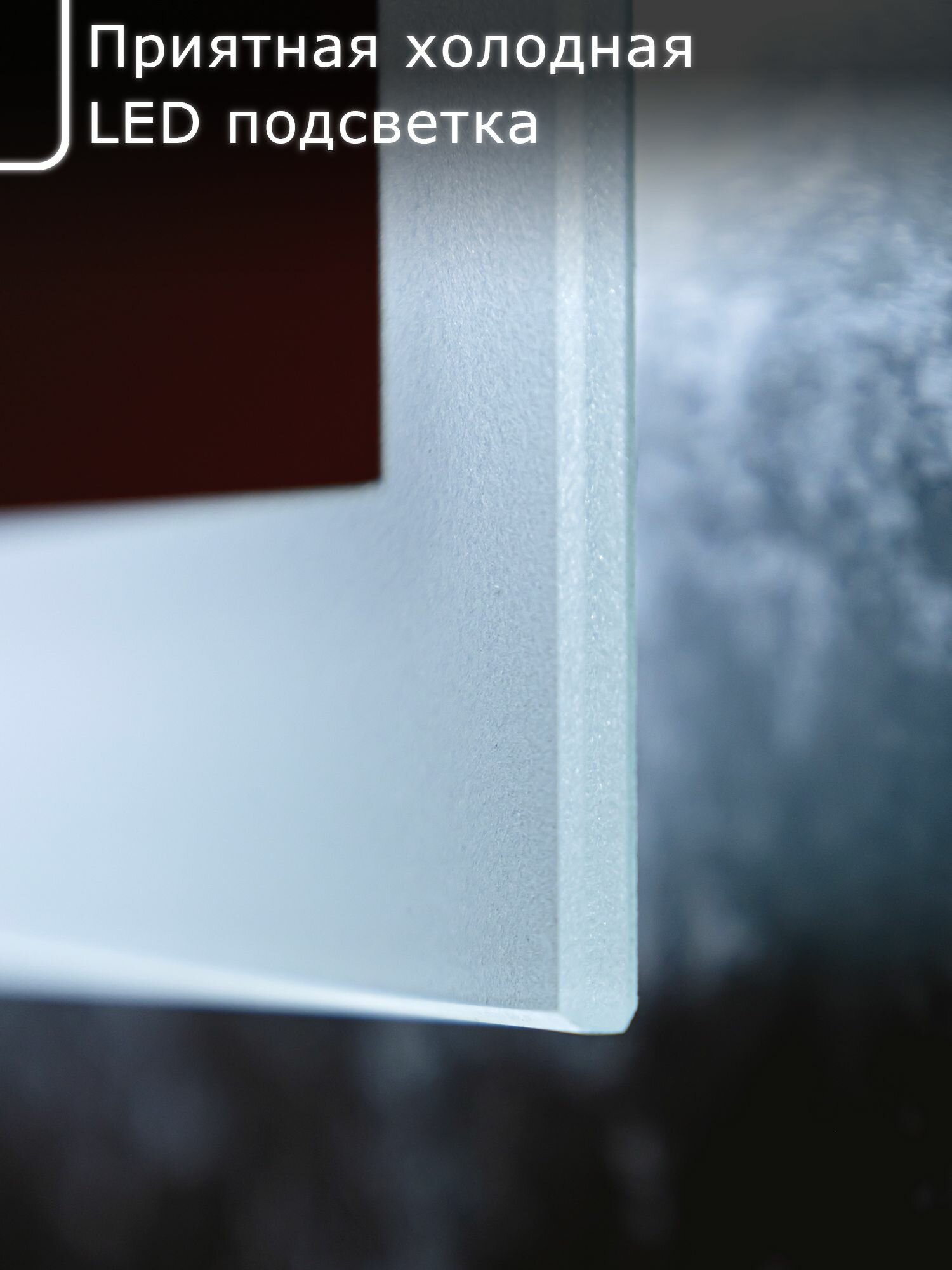 Зеркало с ореольной LED подсветкой LARO 50x60см (холодный свет 6000К, прямоугольное настенное для ванной сенсорное выключение) интересное: