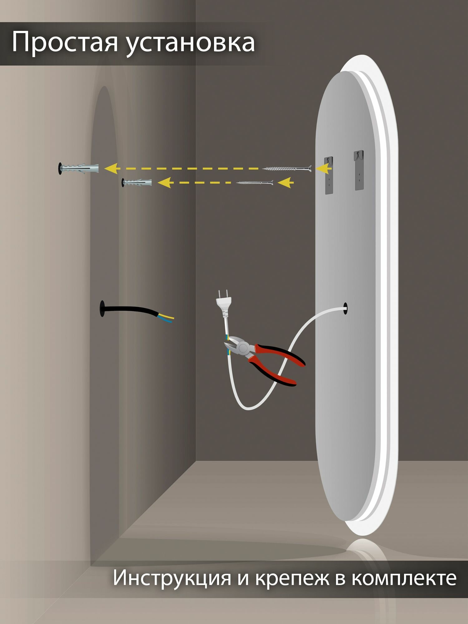 | Комплектация | Шуруп с прессшайбой 2 штуки, шнур с вилкой 1 метр, инструкция, гарантийный талон |