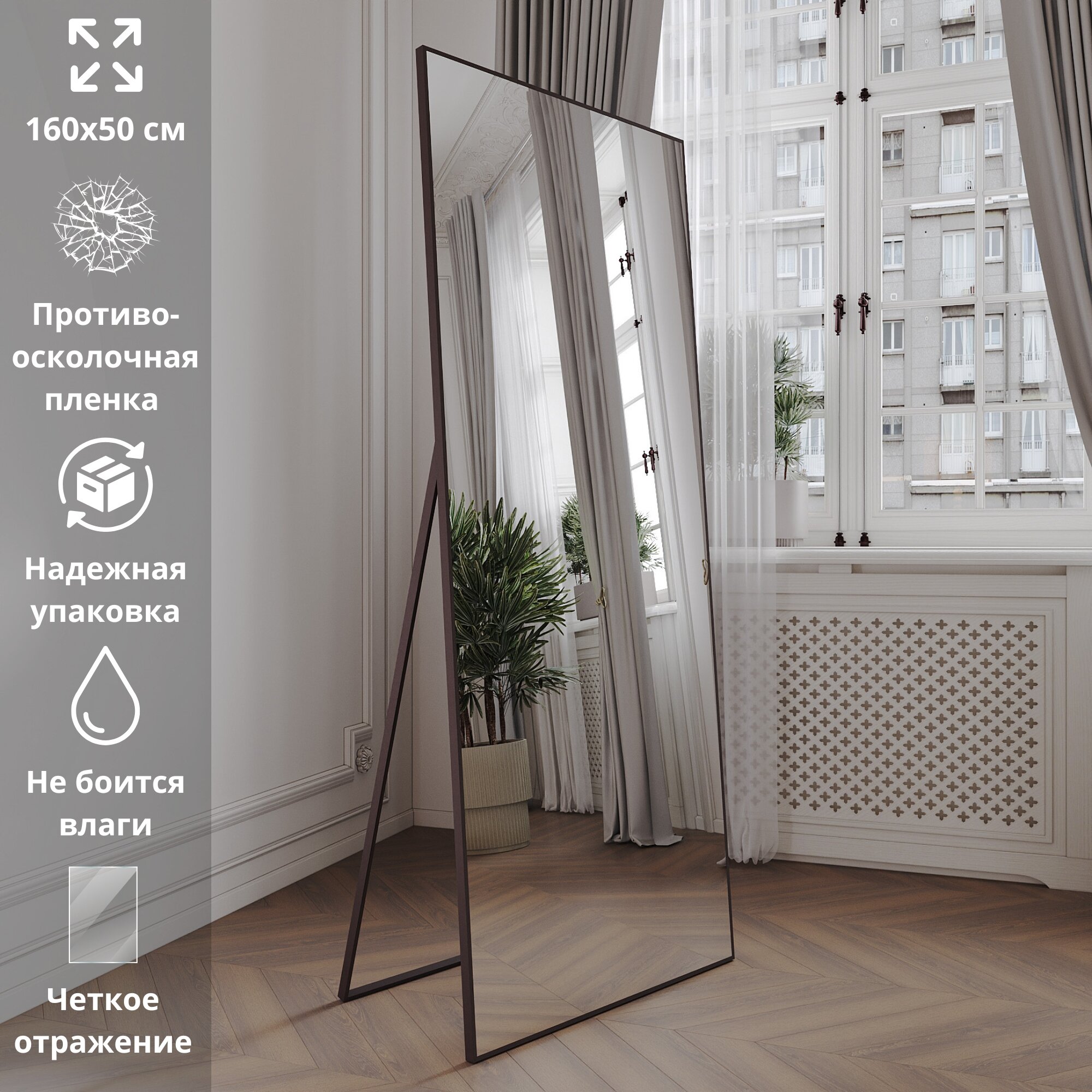 Зеркало напольное в полный рост, черное зеркало в пол TODA ALMA, 160х50 см
