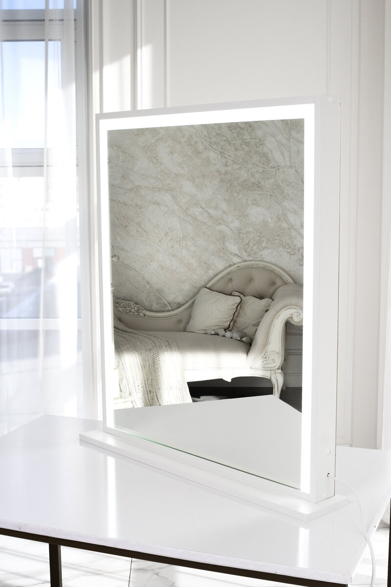 Купить Гримерное зеркало LED 80*70см на подставке белое