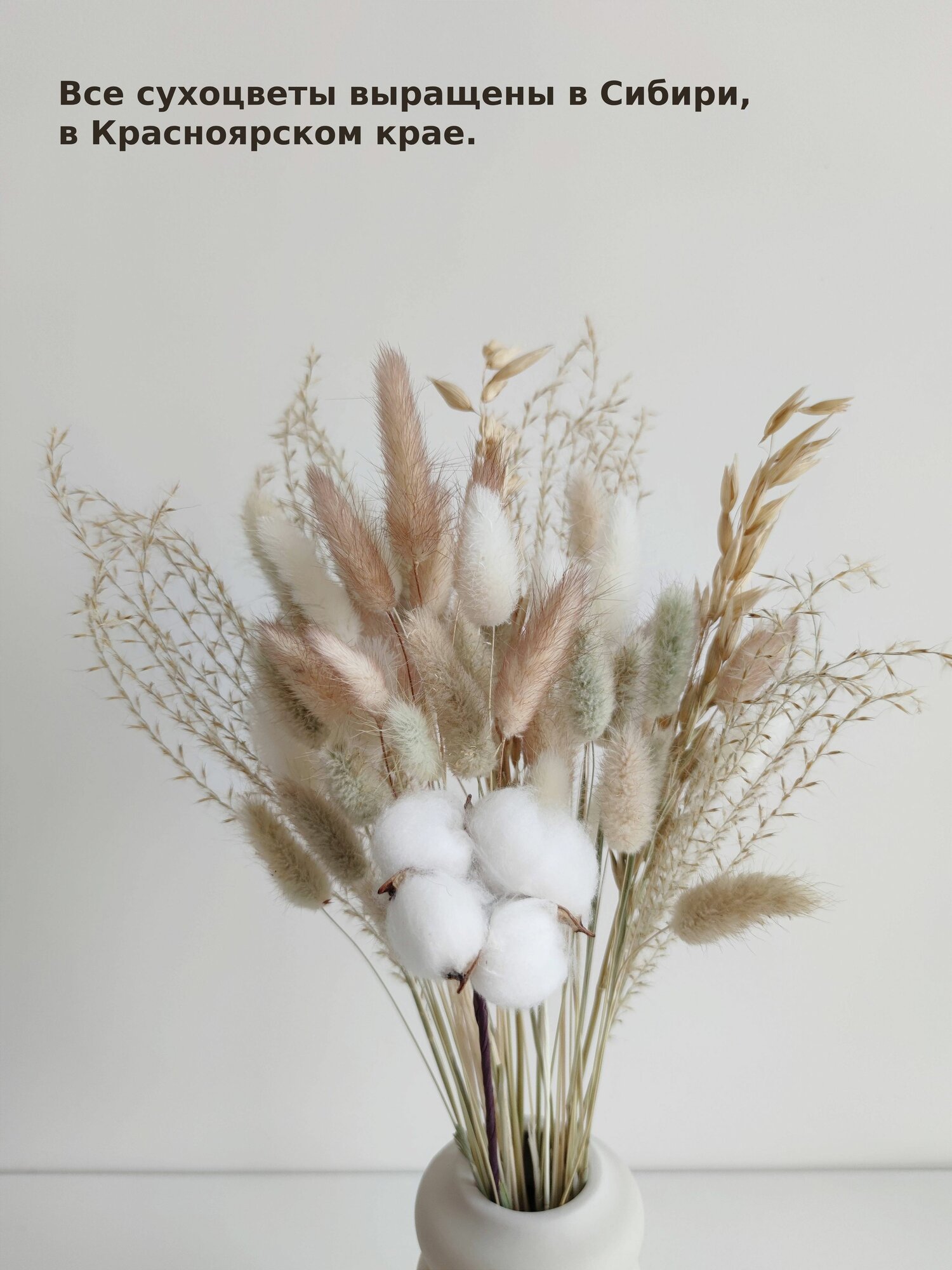 | Подробная комплектация | Лагурус, овес, мискантус, хлопок |