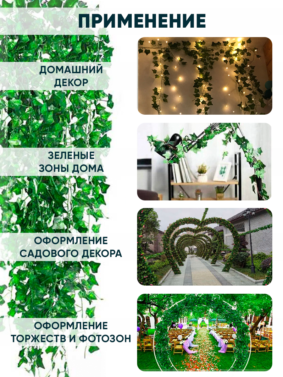 Купить Искусственное растение Лиана Плющ лоза для декора 12 лиан