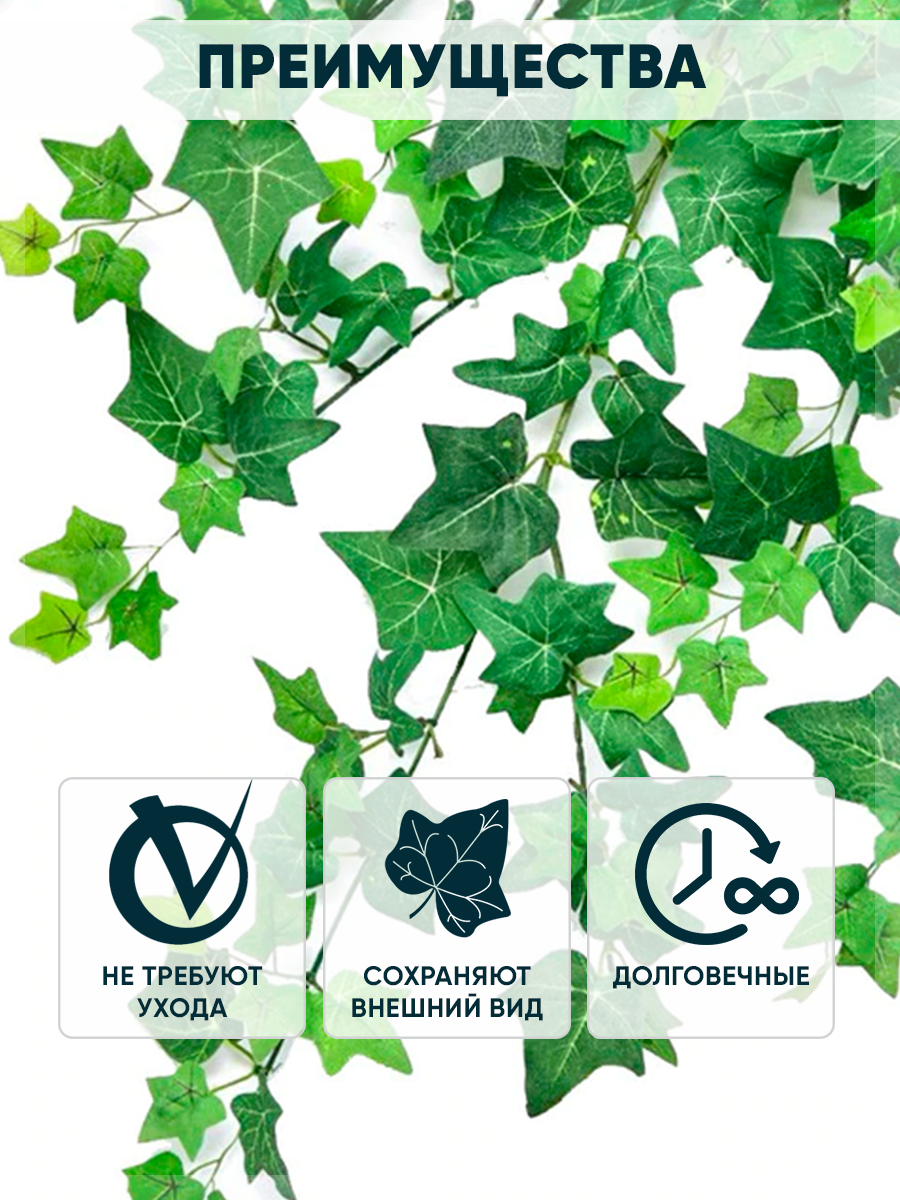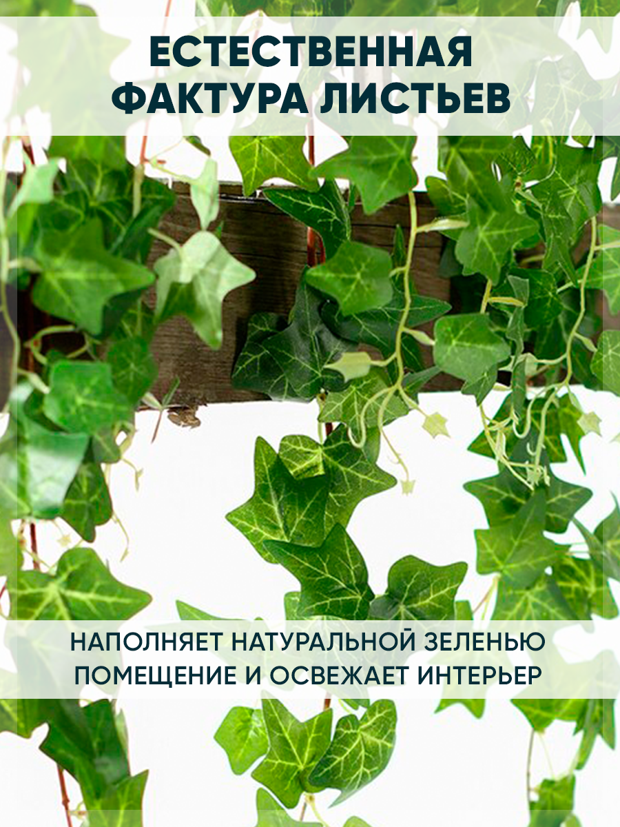 Лиана искусственная для декора плющ крупнолистный 12 штук