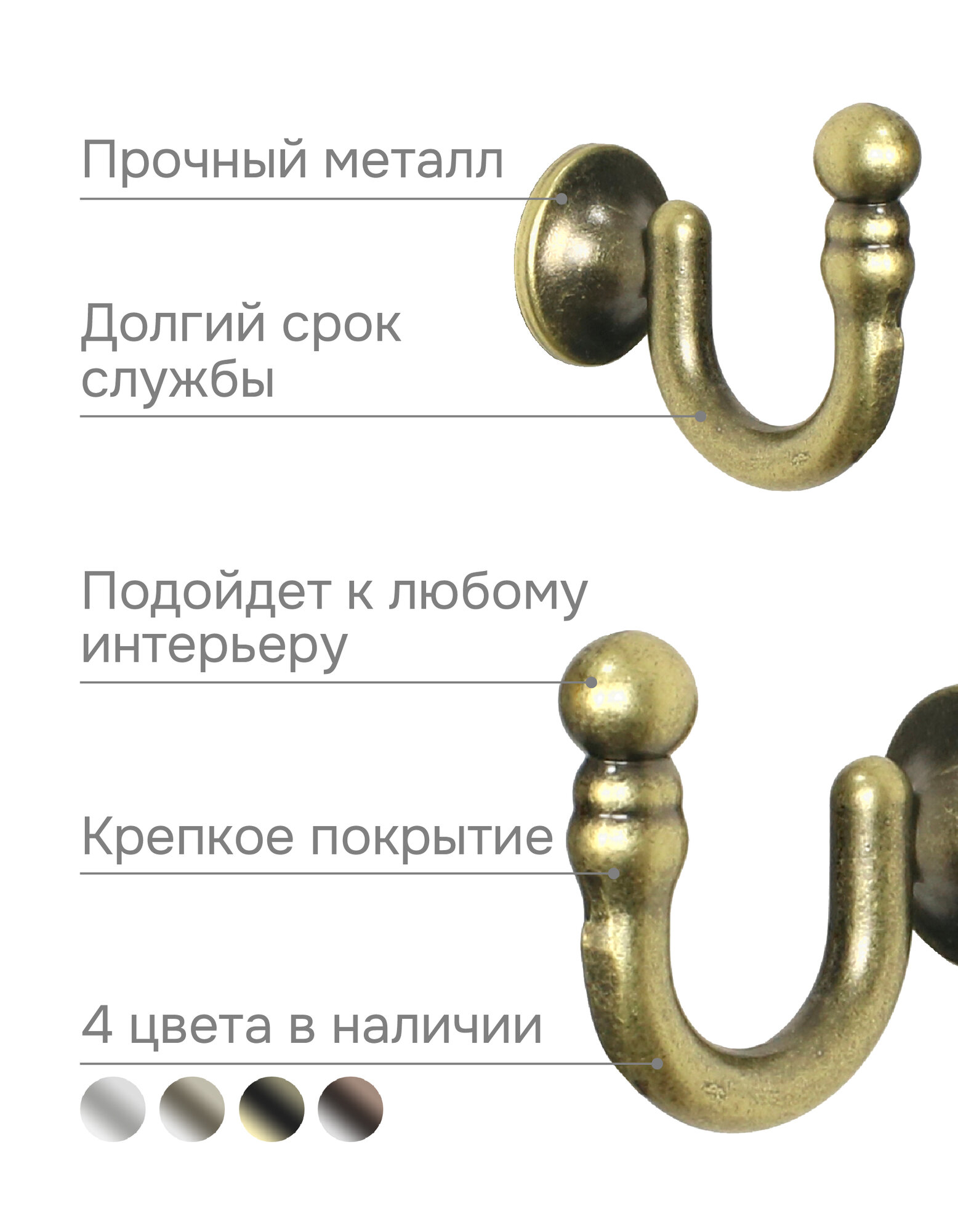 СохранитьКрючок для шторного подхвата, "Эскар", Золото антик, 2 шт. интересное: