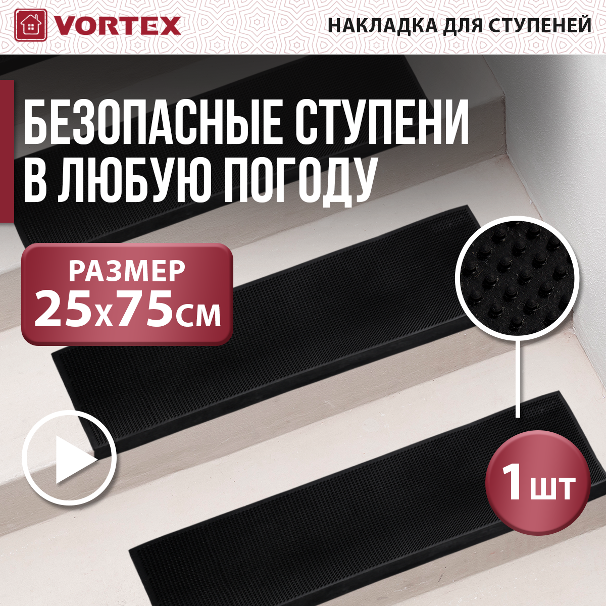 Vortex Коврик на ступеньку 25х75 см, черный 20078 . интересное: