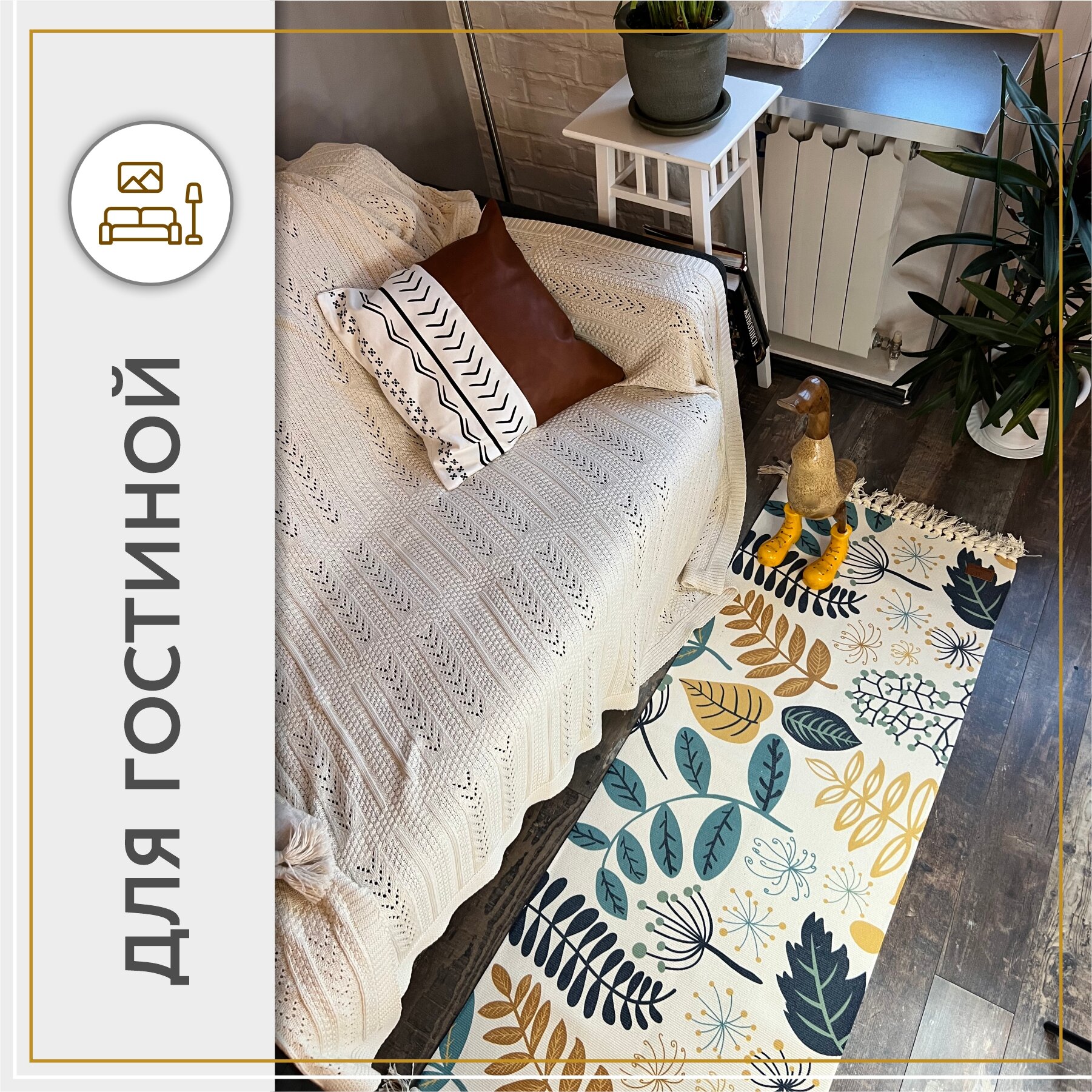 Коврик прикроватный в ЭКО-стиле/Коврик для ванной/Коврик в детскую 60*150 см