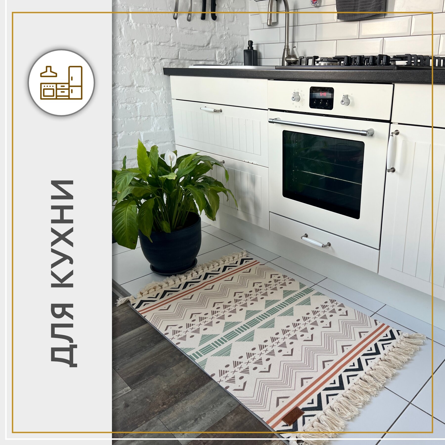 Коврик Sundelica для кровати 120x180, безворсовый, хлопок, цвет бежево-зеленый