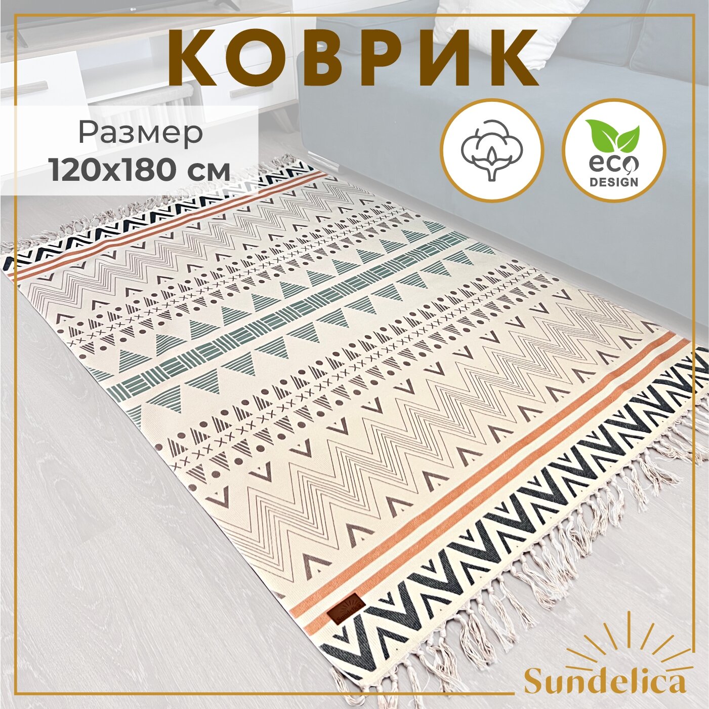 Купить Коврик Sundelica для кровати 120x180, безворсовый, хлопок, цвет бежево-зеленый
