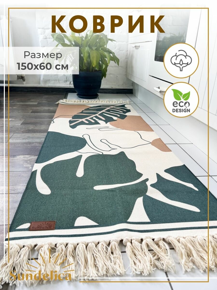 Коврик Sundelica для кровати 120x180, безворсовый, хлопок, цвет бежево-зеленый