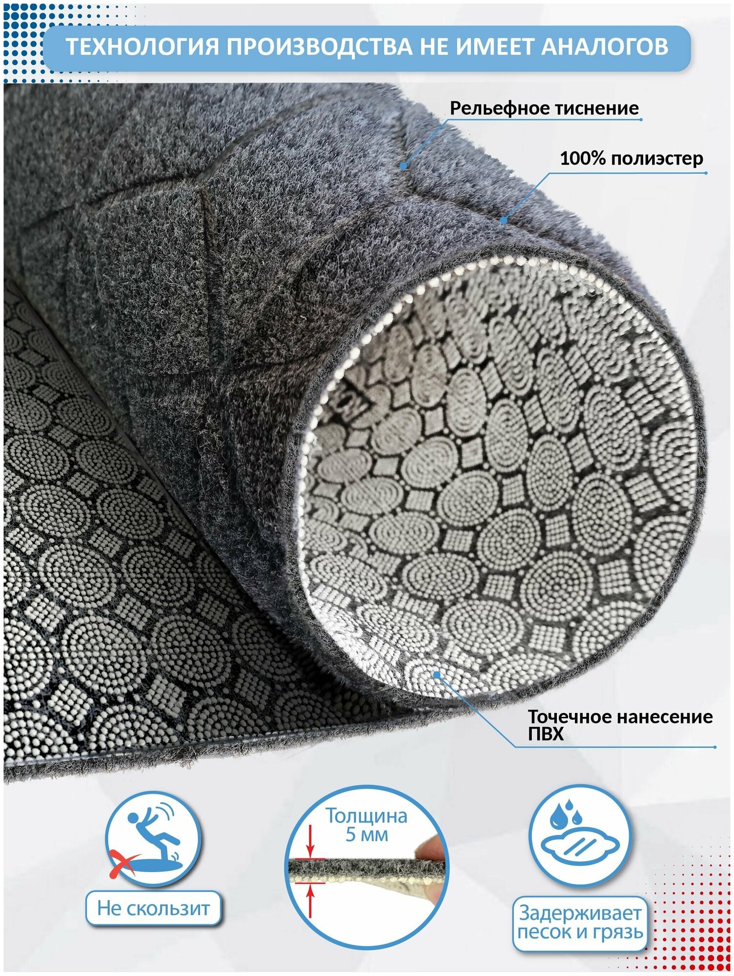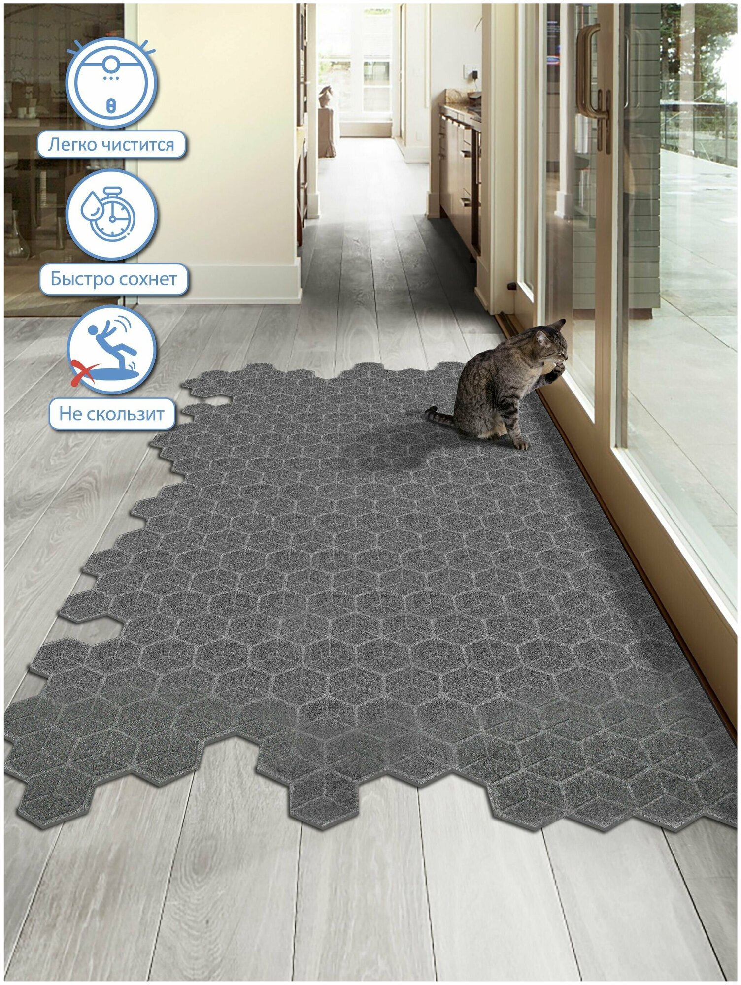 Коврик вырезной придверный SHAHINTEX практик Соты антискользящий влаговпитывающий 60х90 см/ коврик серый, коврик в прихожую