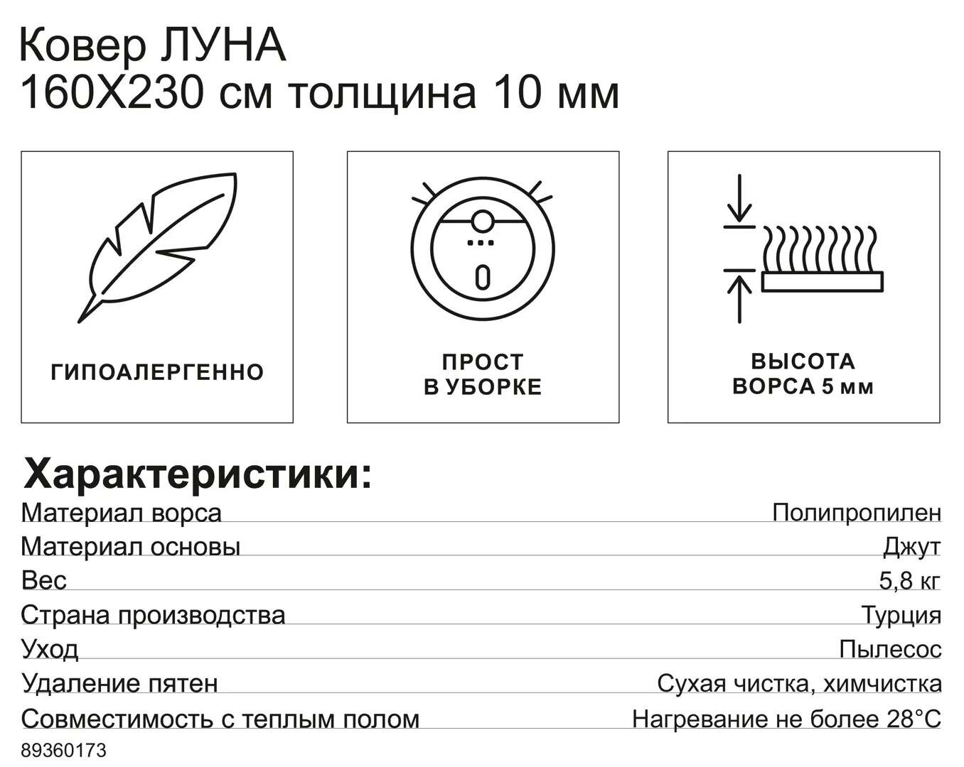 Ковер Луна 160x230 см полипропилен E944AW цвет кремовый интересное: