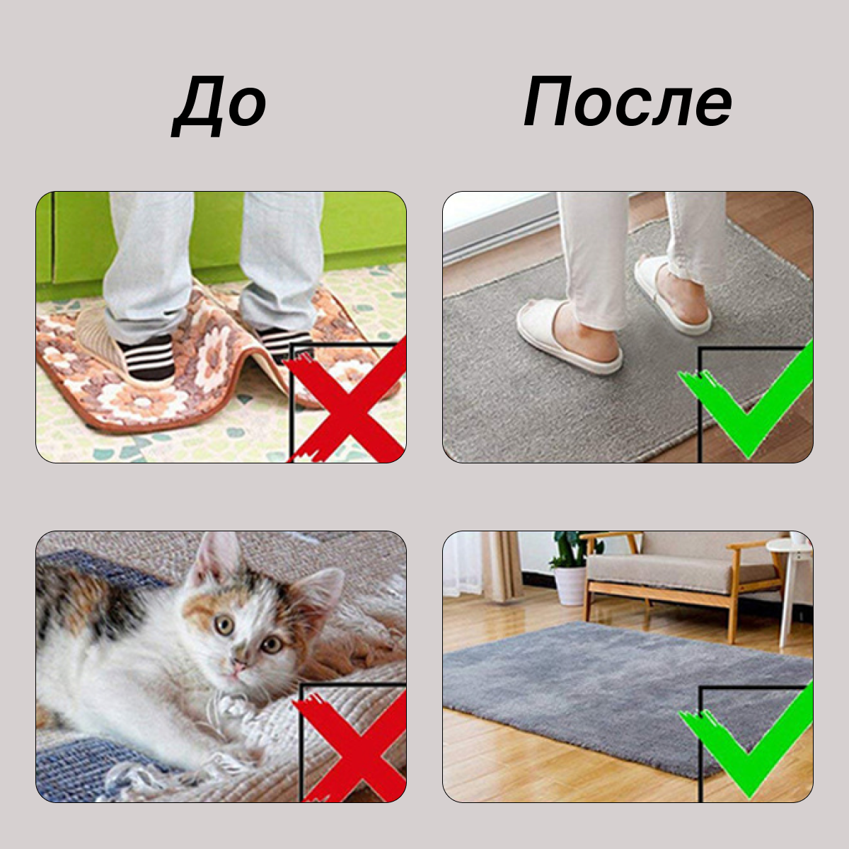 | Комплектация | Фиксатор-липучка для ковра - 4 шт. |