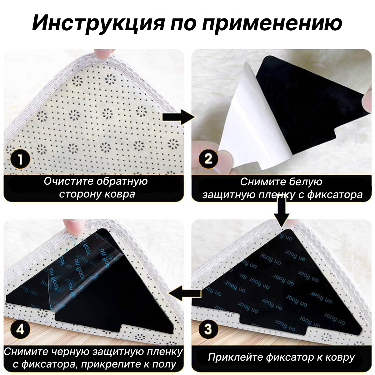 Противоскользящие липучки фиксаторы для ковров MAGGAZINN на пол, 4 штуки интересное:
