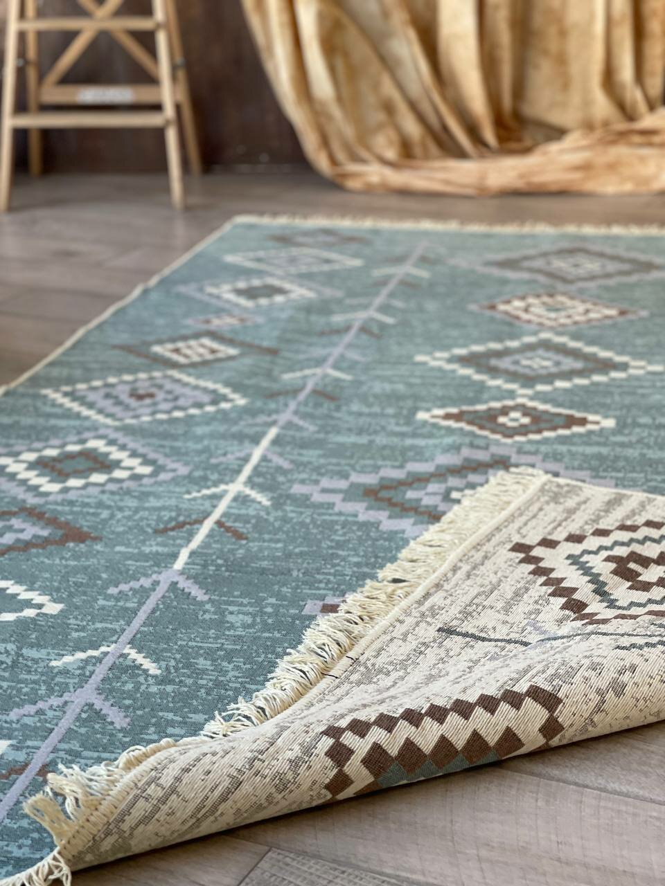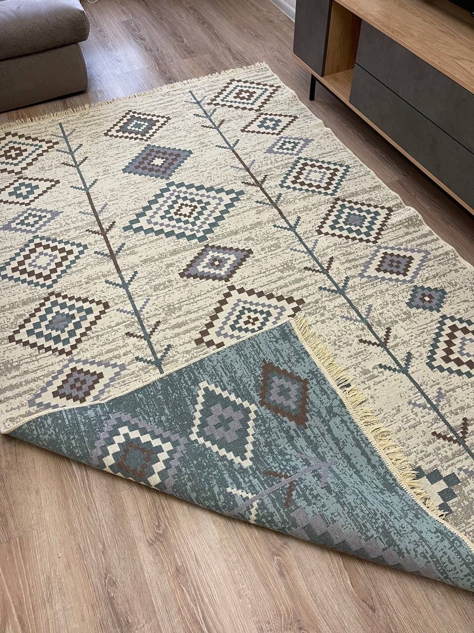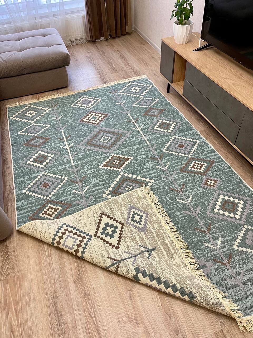 Турецкий хлопковый ковер 160×250см / безворсовый ковер / двусторонний килим / ковер в стиле бохо / прикроватный ковер / эко килим Musafir Home интересное: