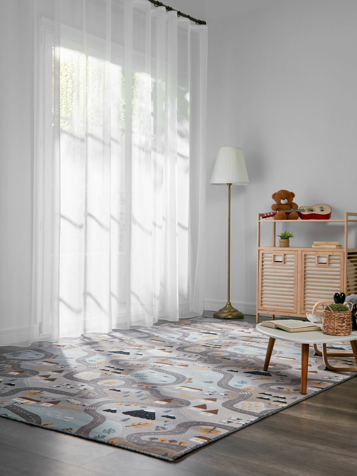 Ковер 300х350 с ворсом / Ковер для комнаты серые дороги