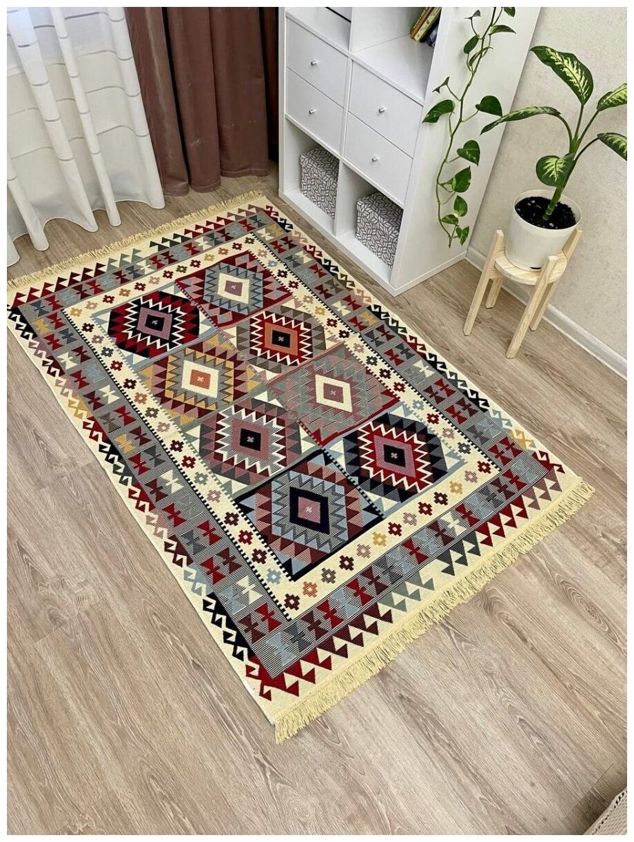 Купить Ковер комнатный хлопковый килим 120×180 см / Турецкий двусторонний экокилим Musafir Home