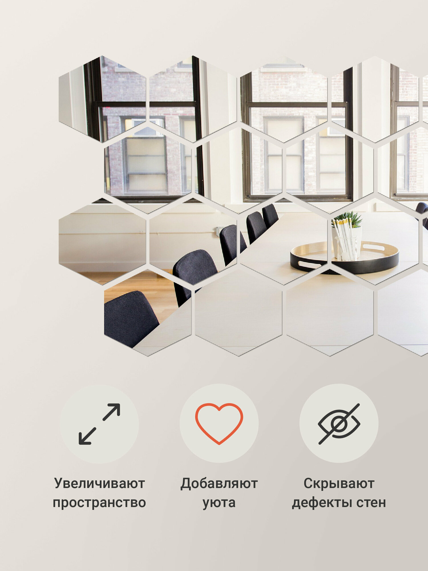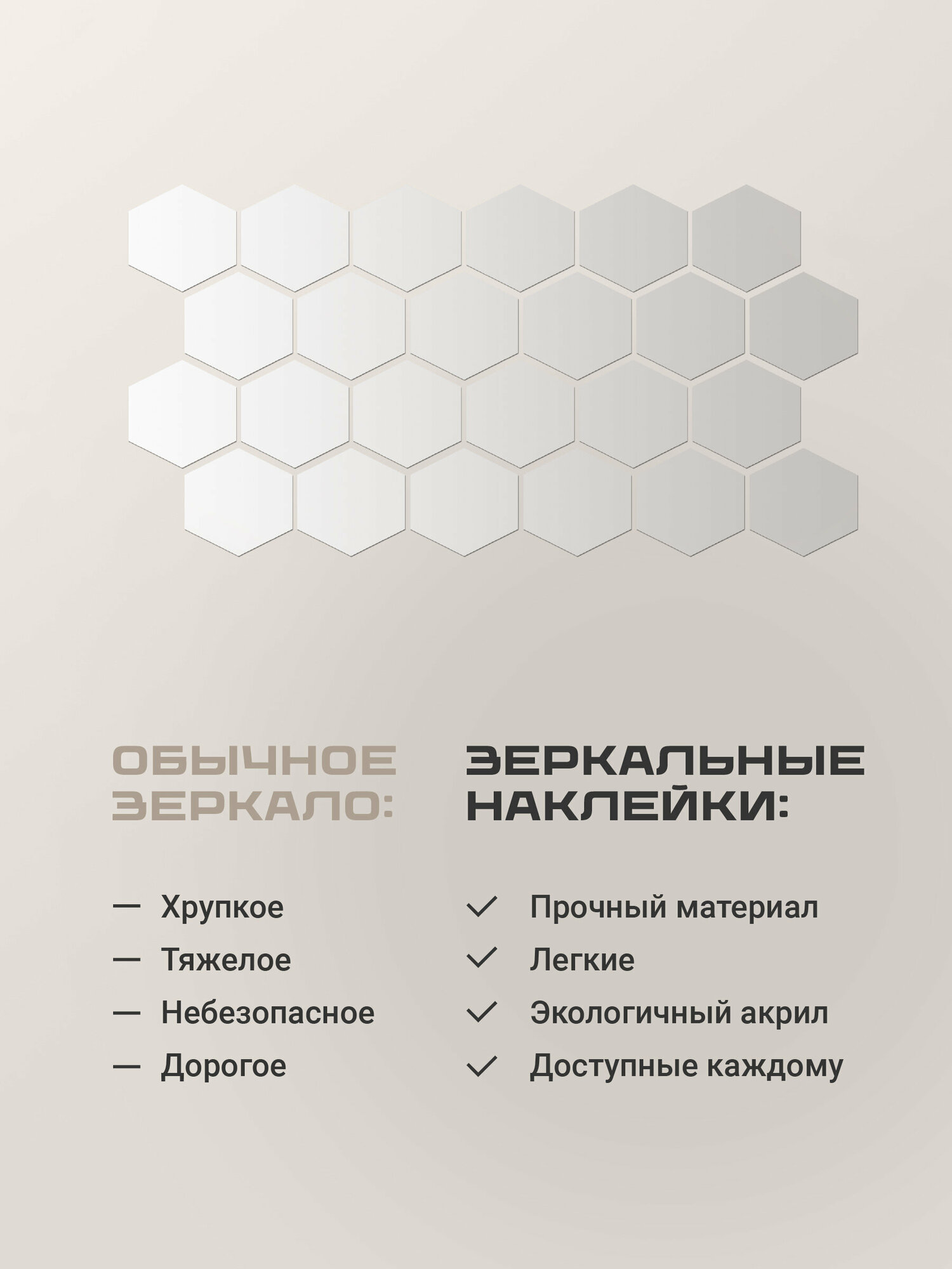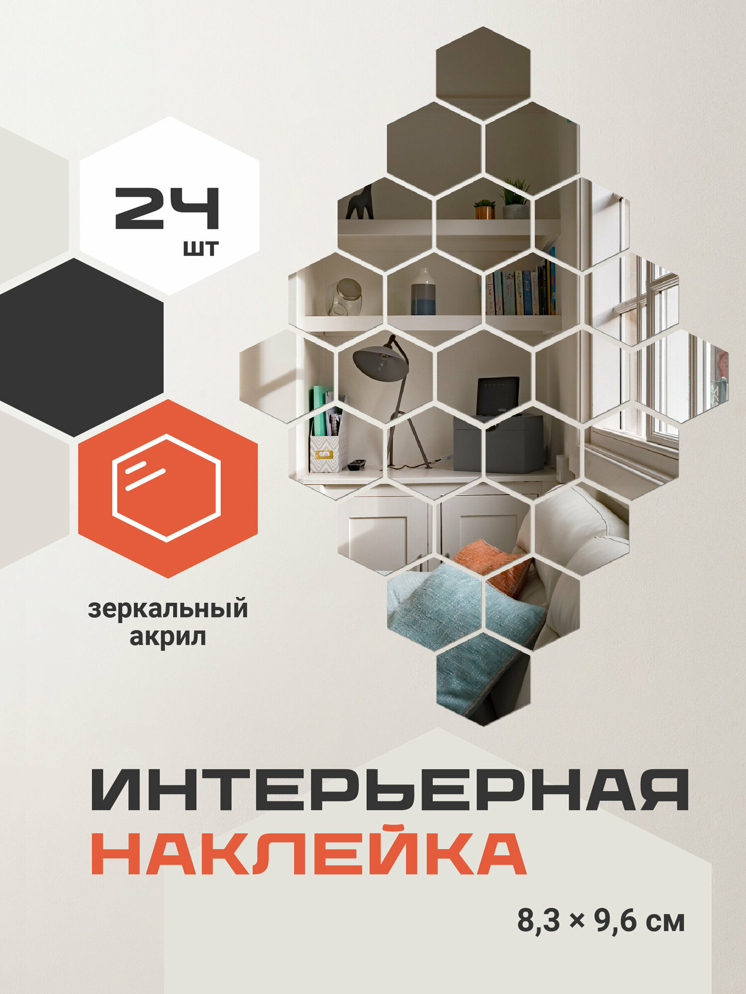 Наклейки на стену для декора Birdhouse, Зеркальные наклейки интерьерные на стену, Соты, 24 шт.