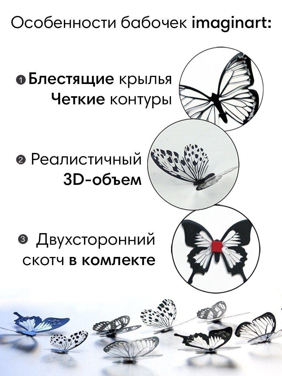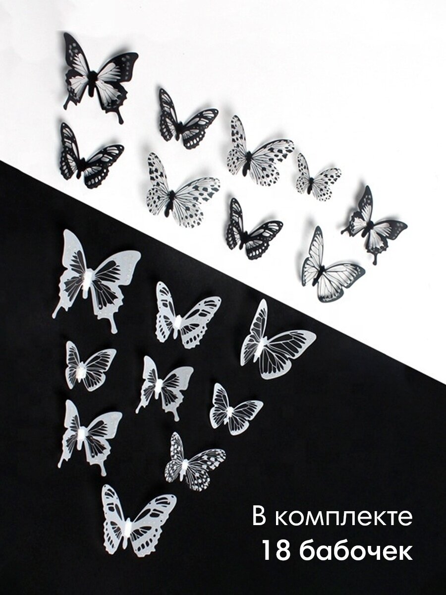 Наклейки интерьерные 3D бабочки черно-белые для украшения стен от imaginart интересное: