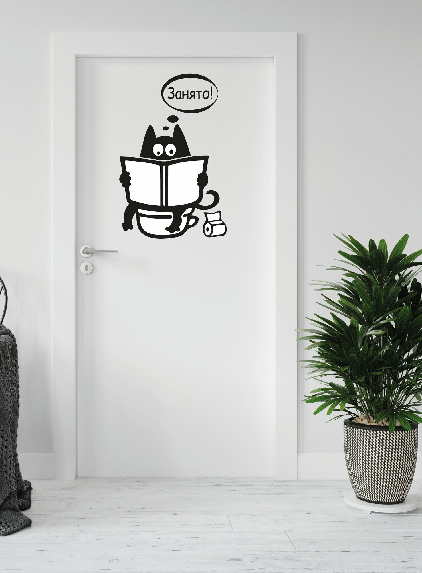 Наклейки в туалет UND "Занято" на холодильник и дверь с котом, черные/белые, влагостойкие, термостойкие