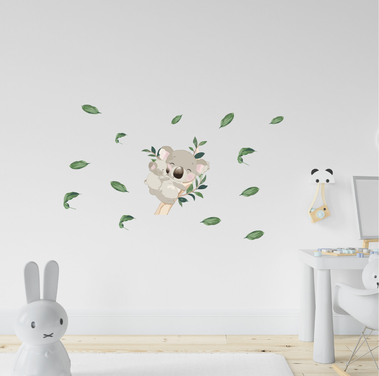 Детская интерьерная большая наклейка с коалой и малышом в листьях