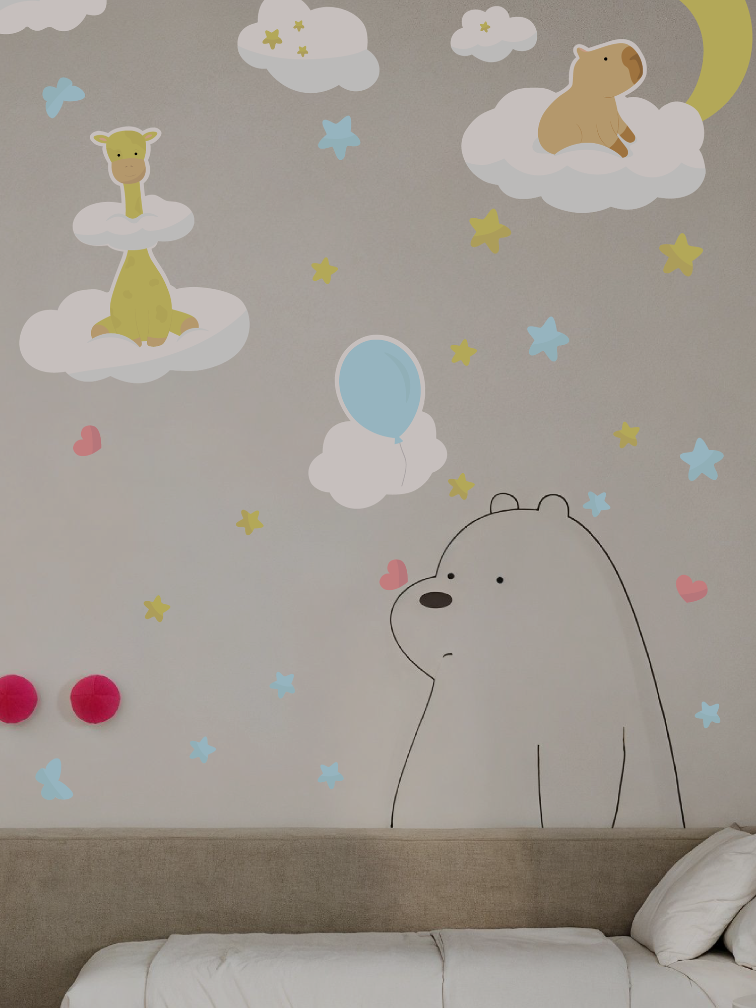 Большие интерьерные наклейки на стену детская мишка звезды медвежонок в облаках