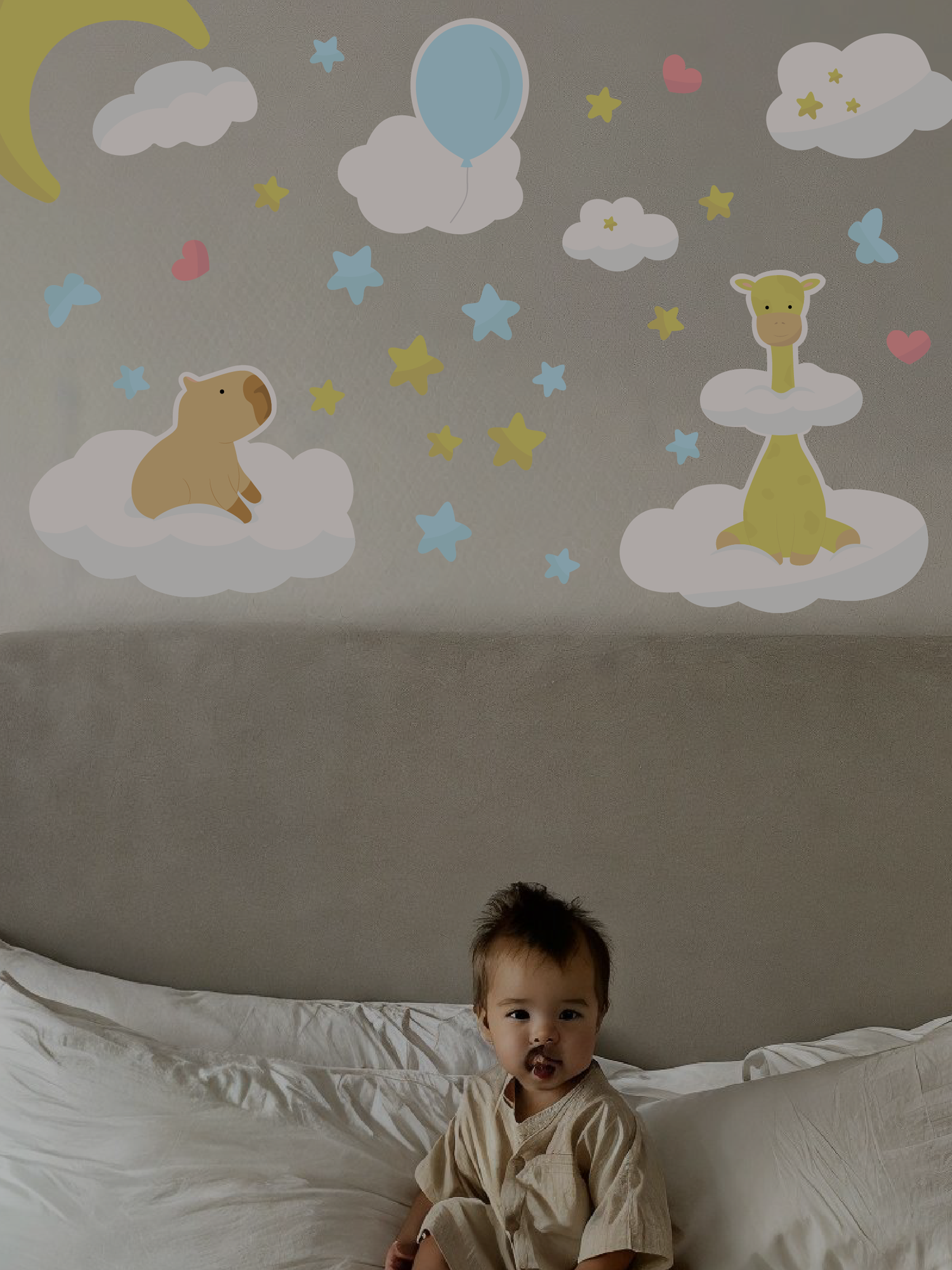 СохранитьКлассная детская декоративная наклейка на стену капибара с жирафом в облаках интересное: