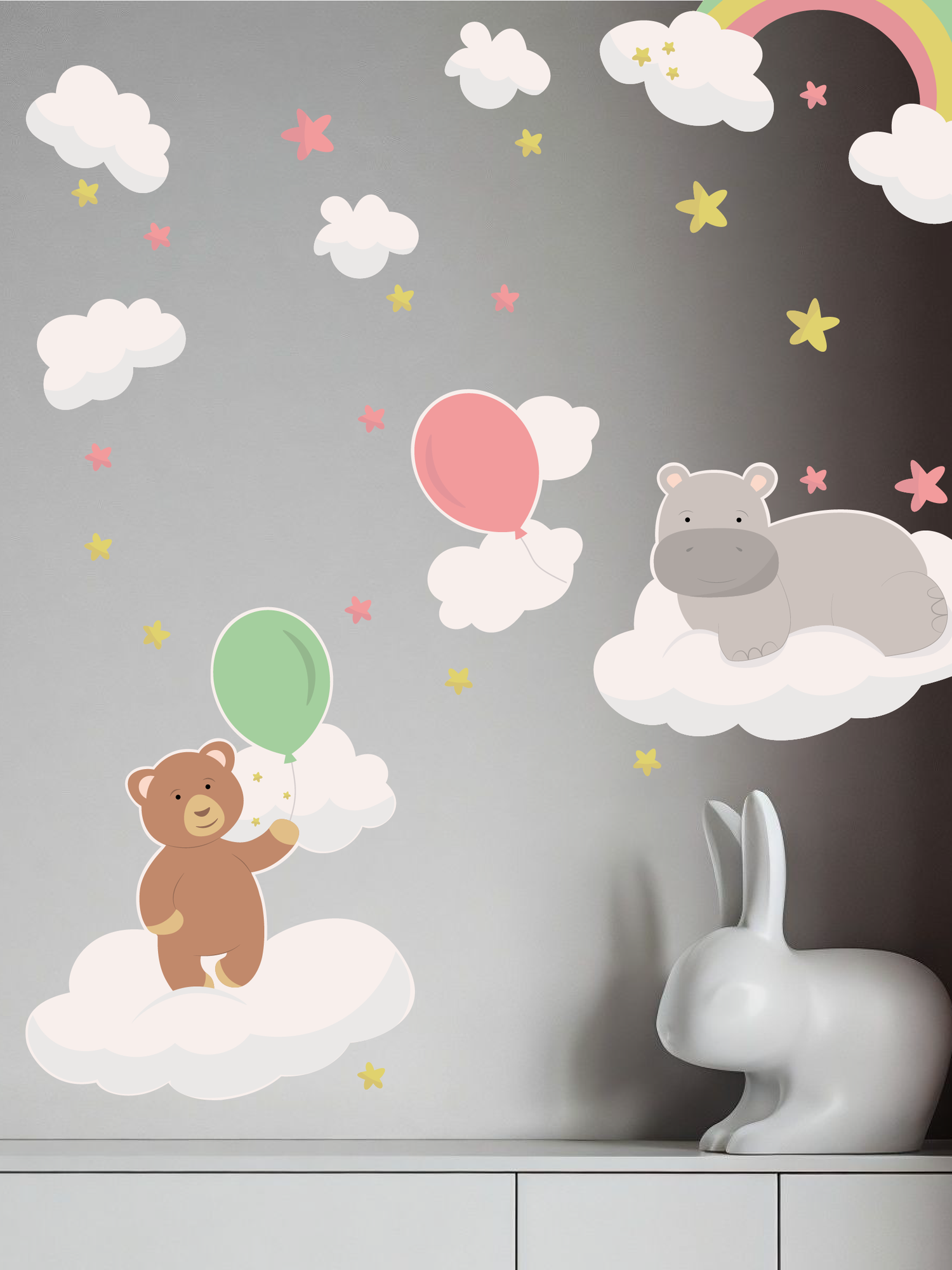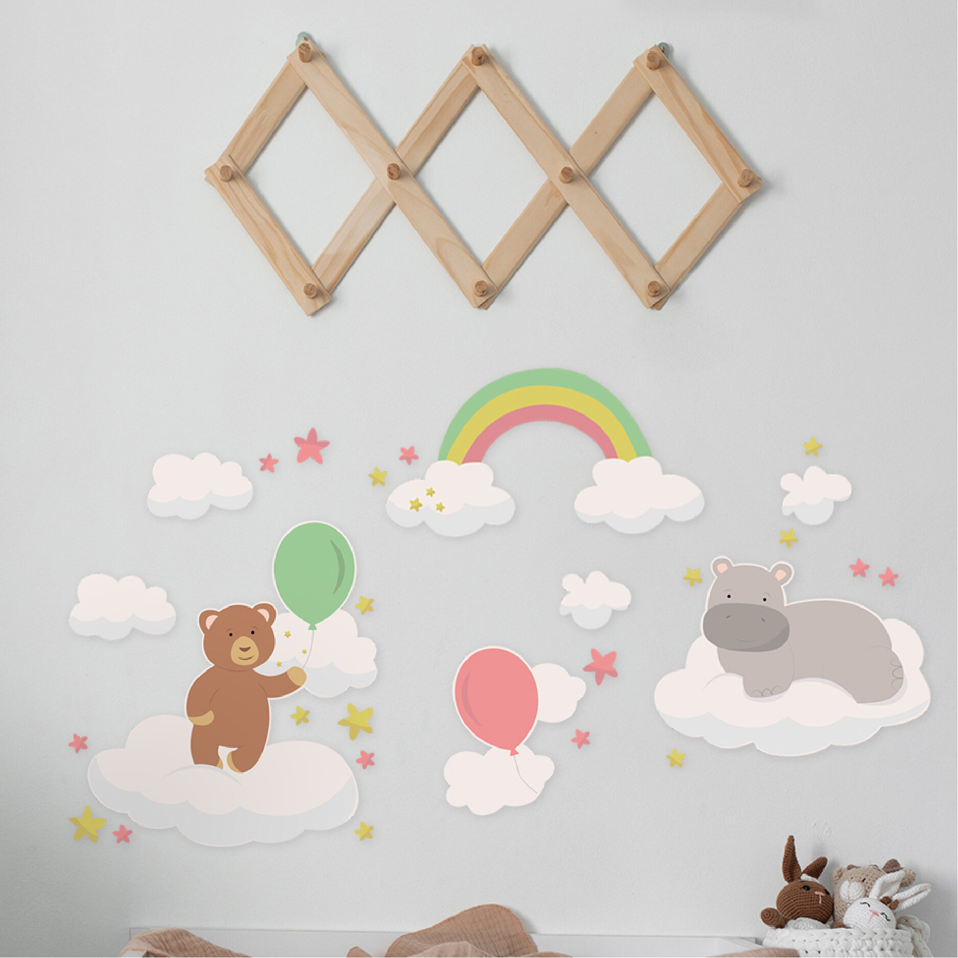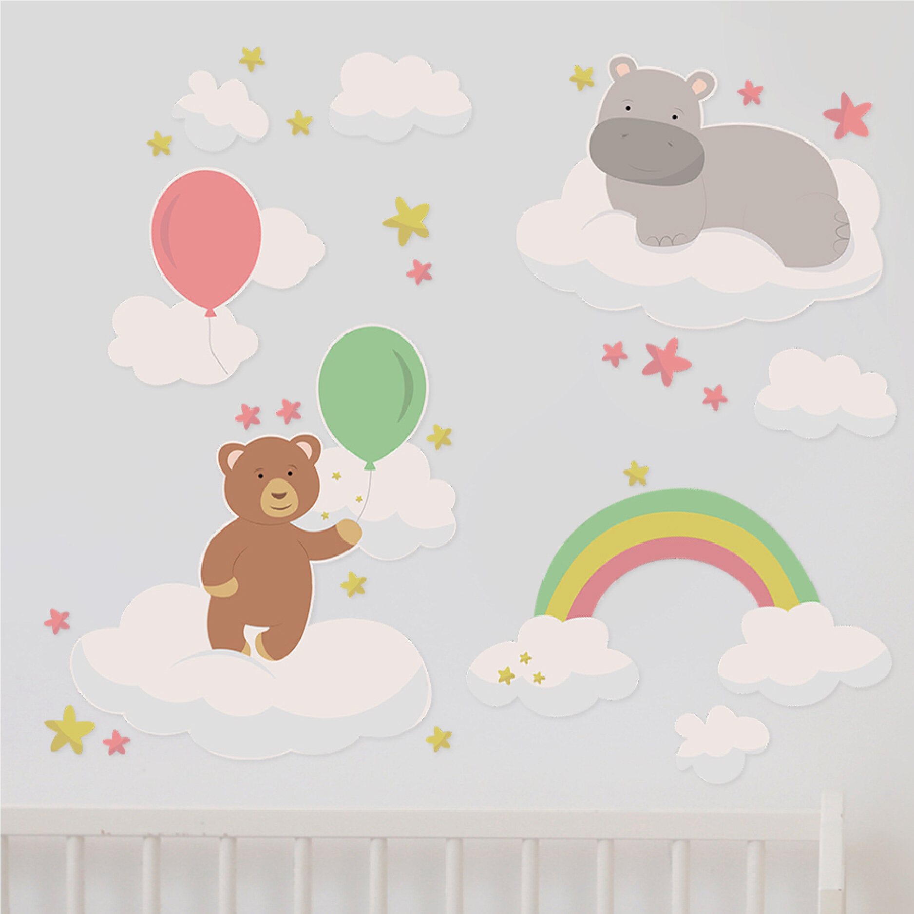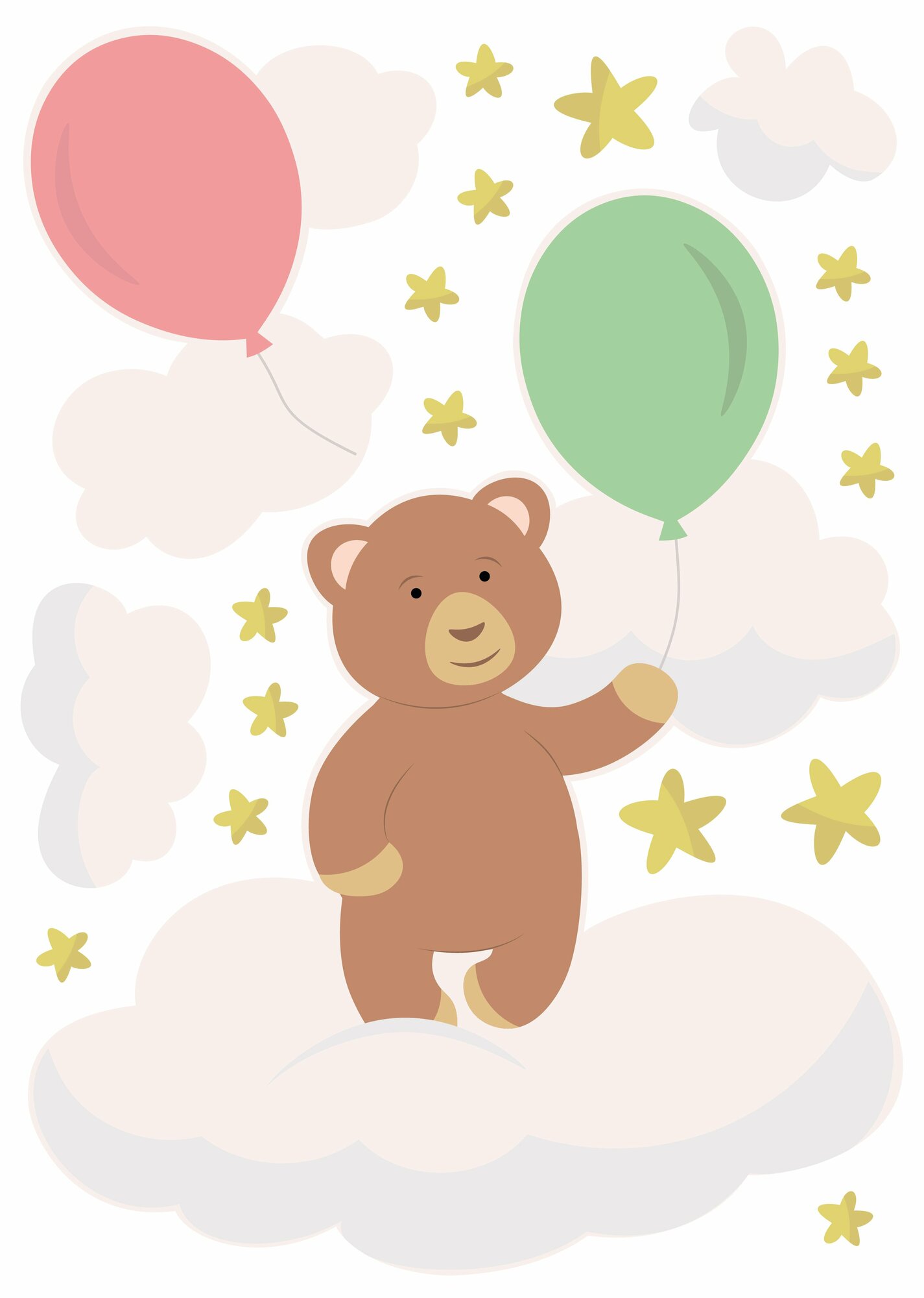 Большие интерьерные наклейки на стену детская мишка звезды медвежонок в облаках
