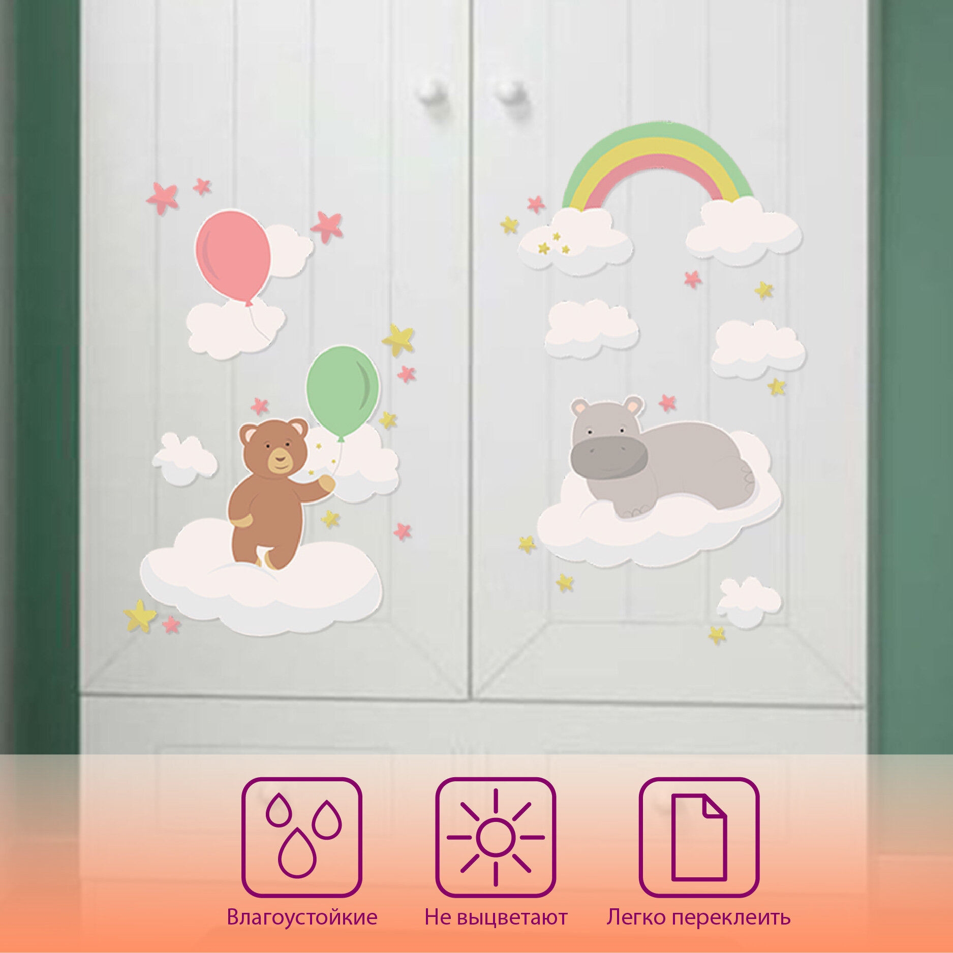 Купить UND "Капибара" - детские наклейки на стену с влагостойкими и термостойкими свойствами