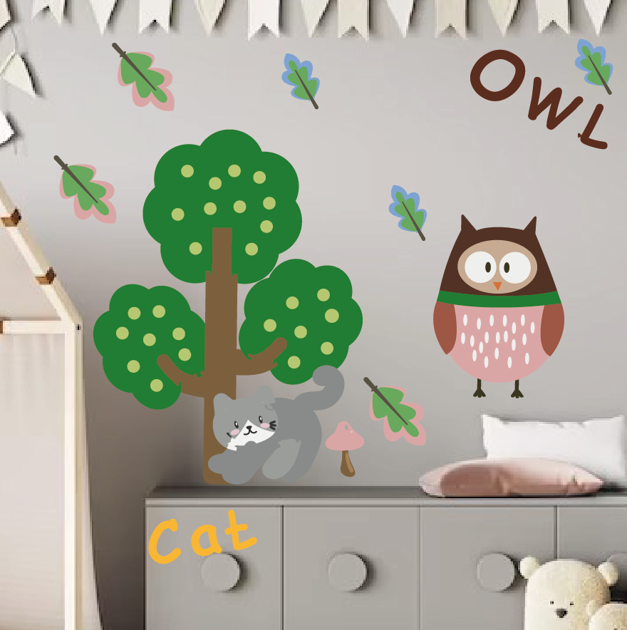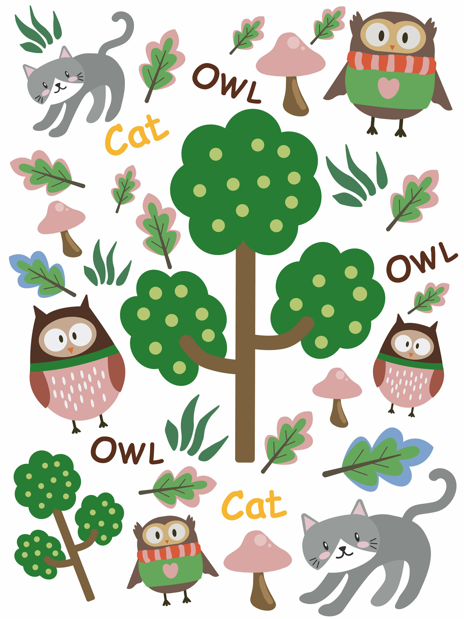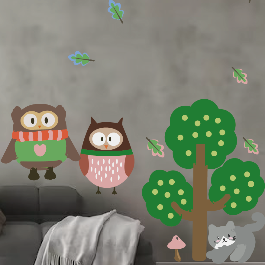 Купить Большие интерьерные наклейки на стену для детей с изображением сов