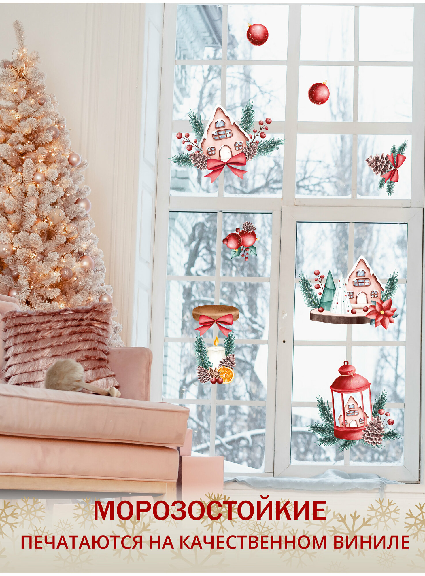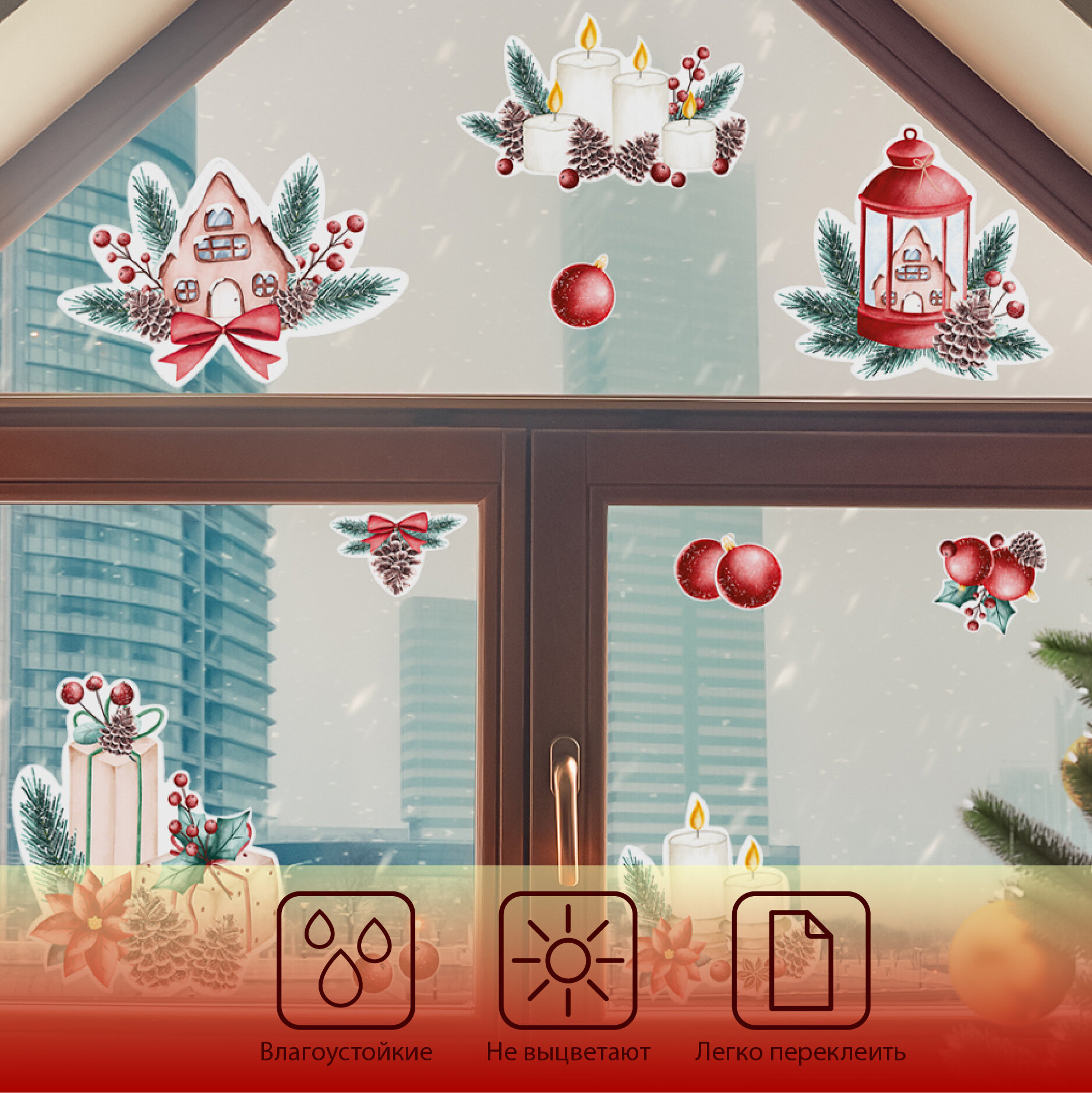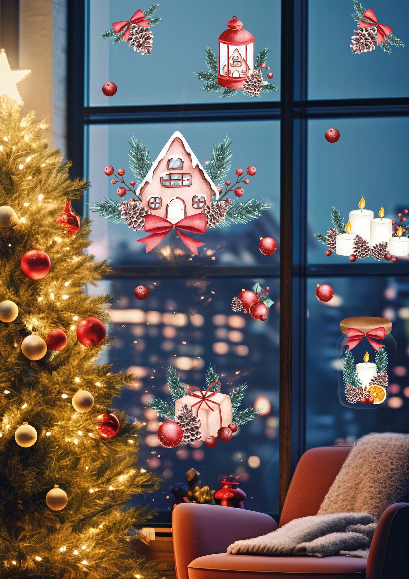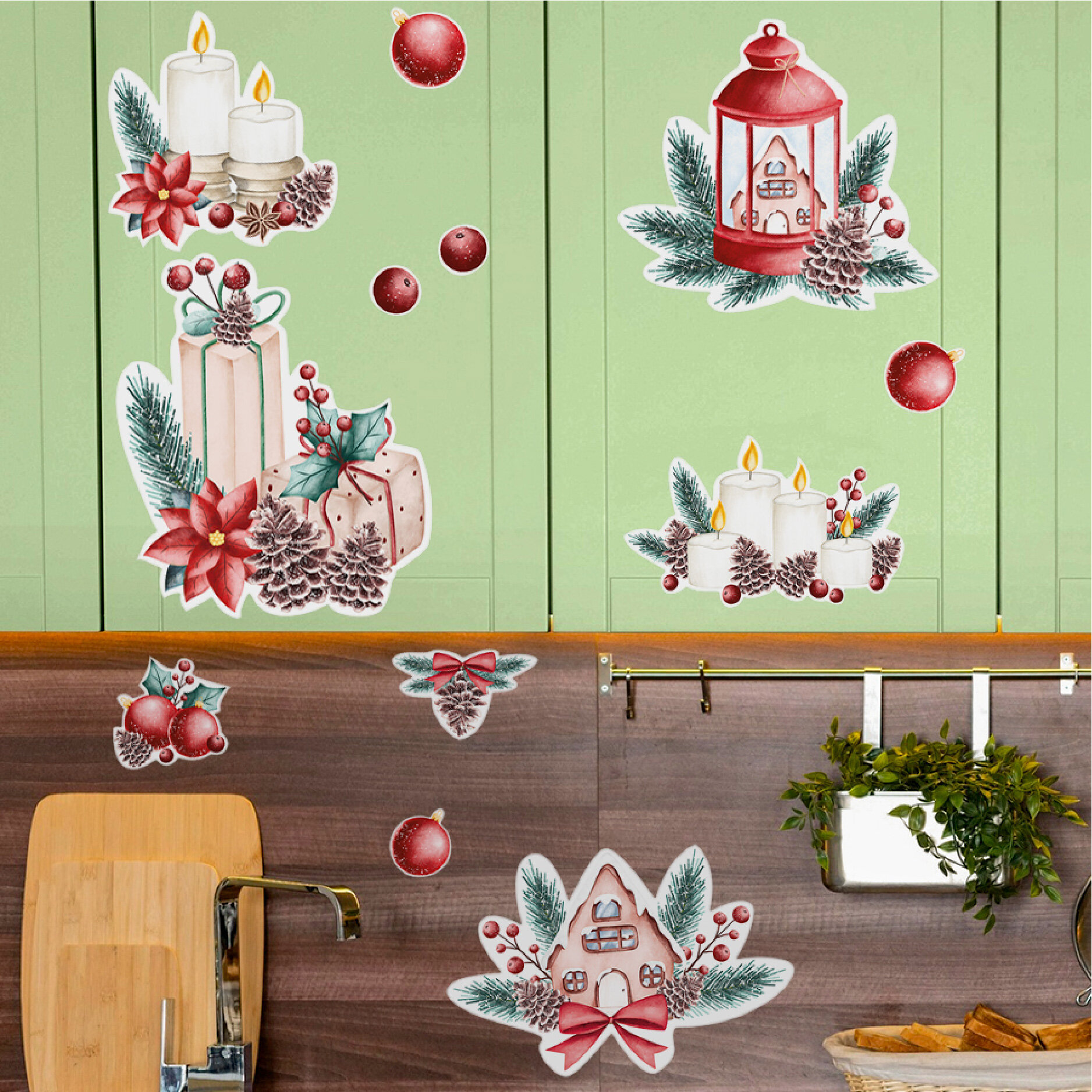 Купить Новогодние интерьерные наклейки UND, цвет красный, влагостойкие, термостойкие, комплект