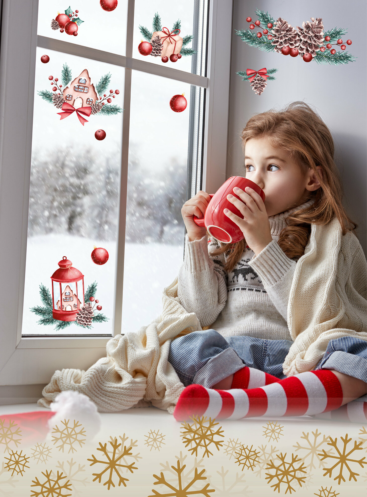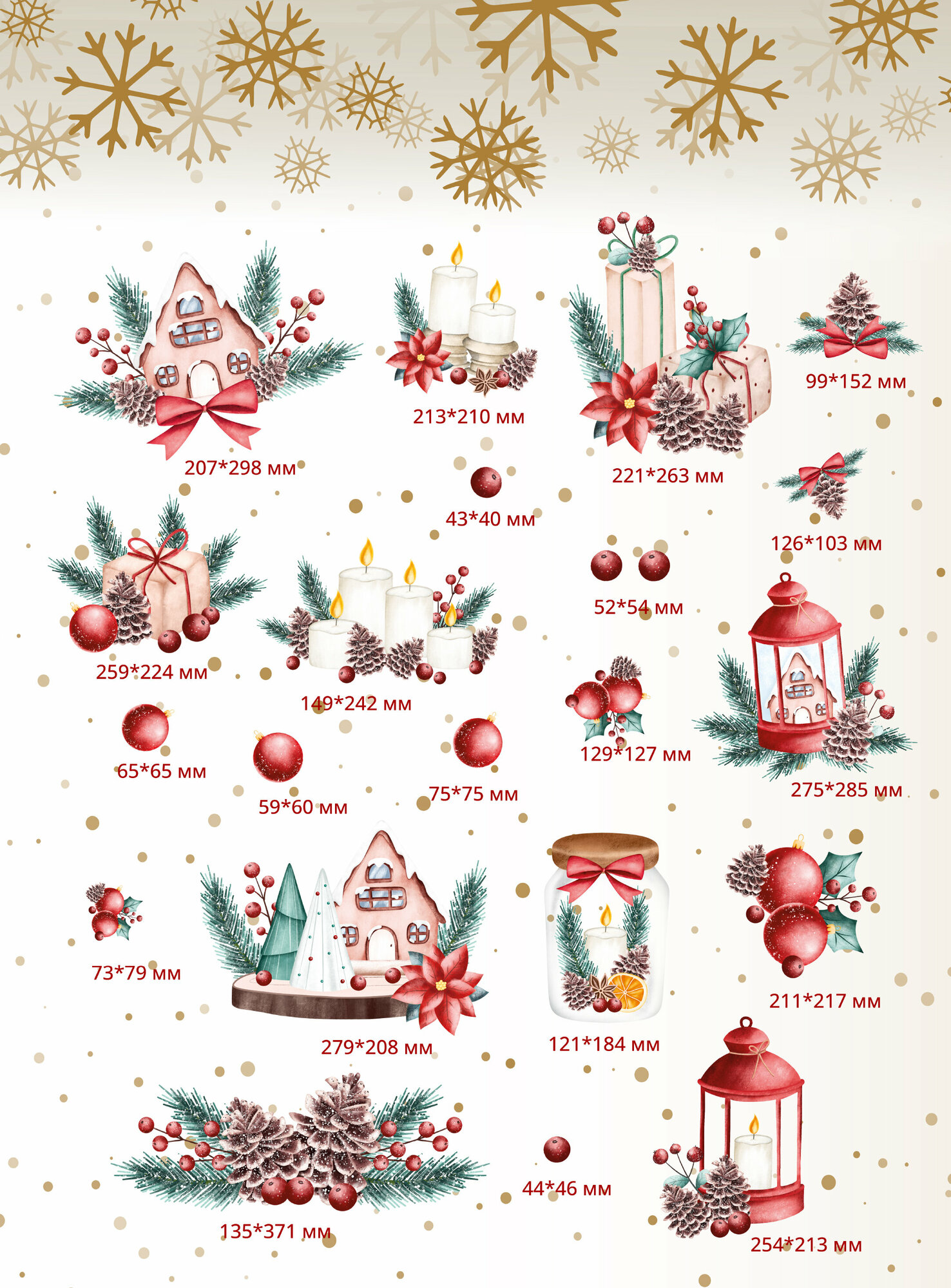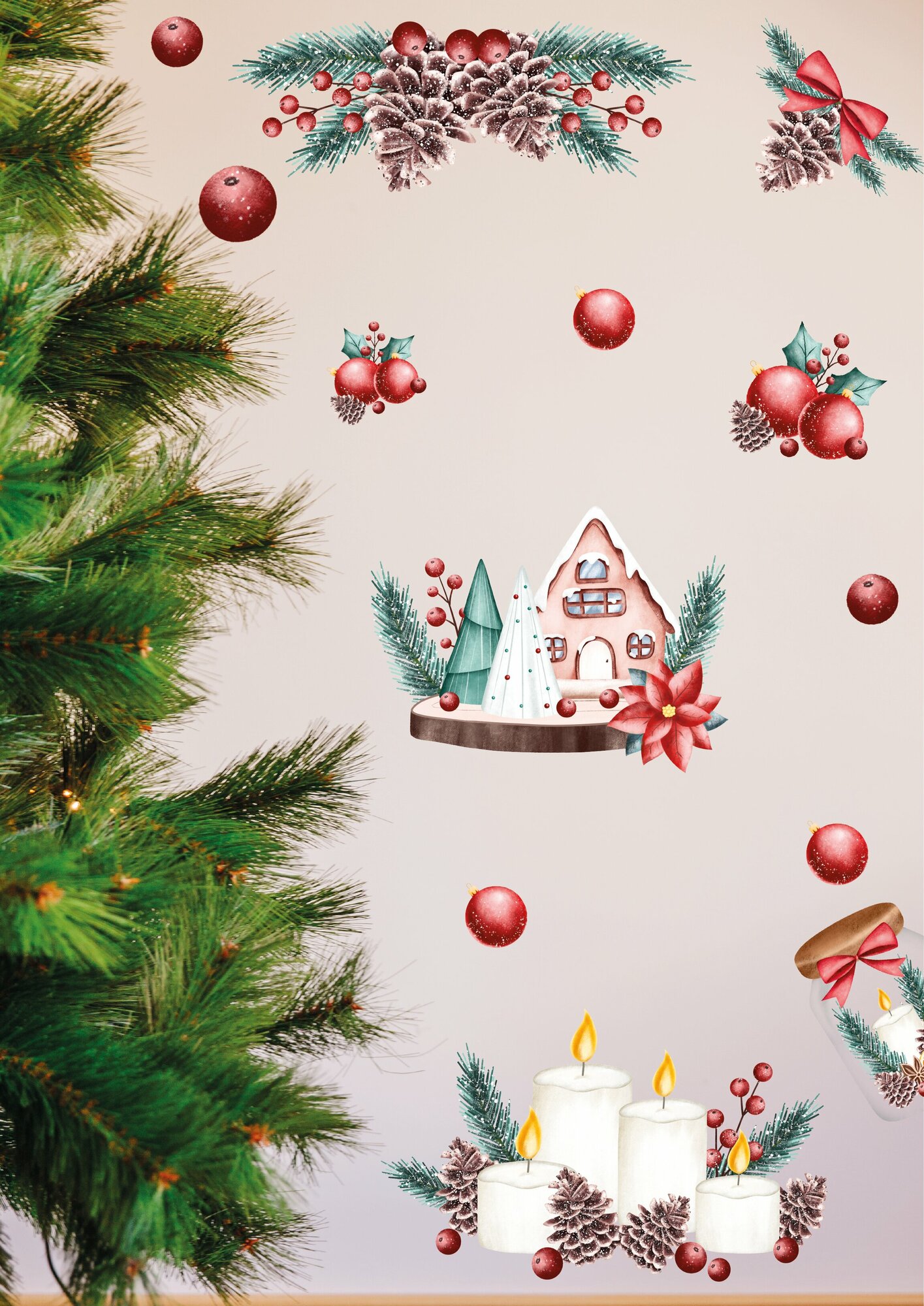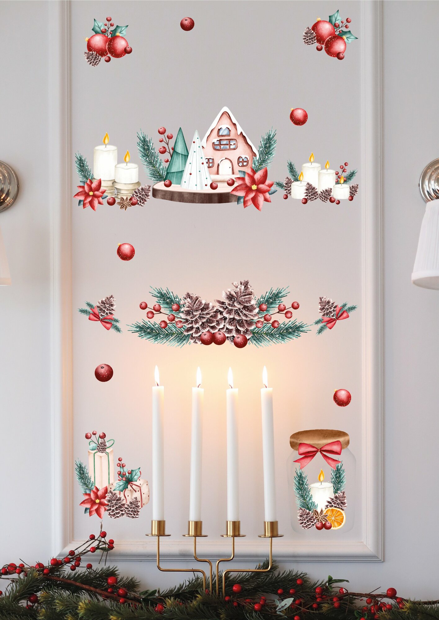 Купить Новогодние интерьерные наклейки UND, цвет красный, влагостойкие, термостойкие, комплект
