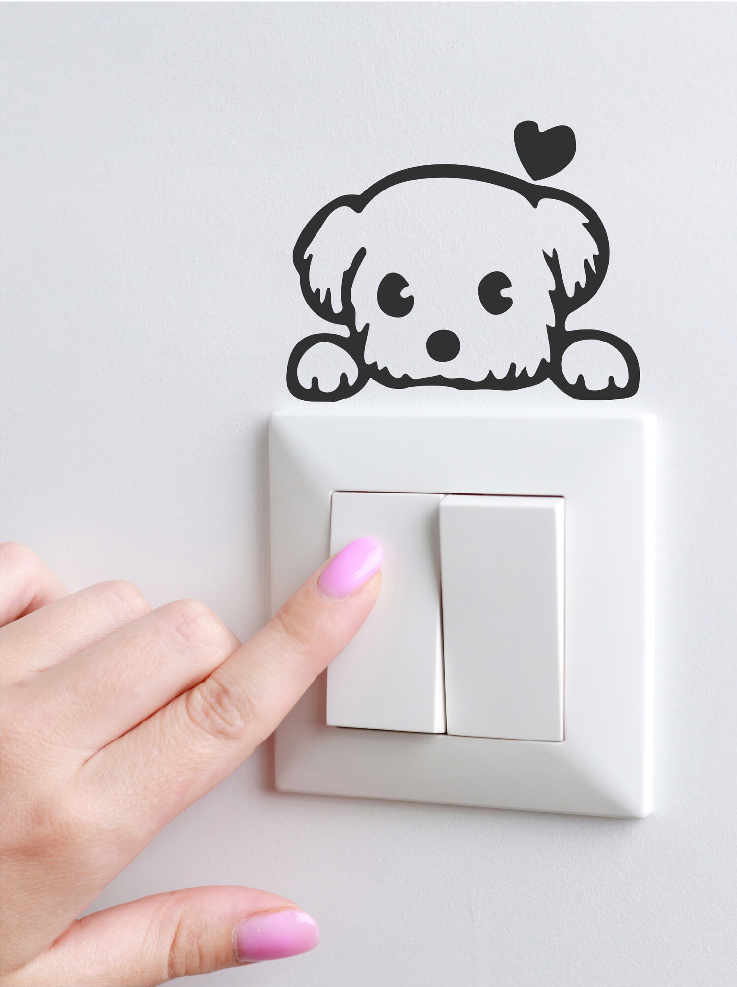 Купить Декор настенный интерьерные наклейки на выключатель и розетку в квартиру, на дачу, в дом, в детскую милая маленькая собачка