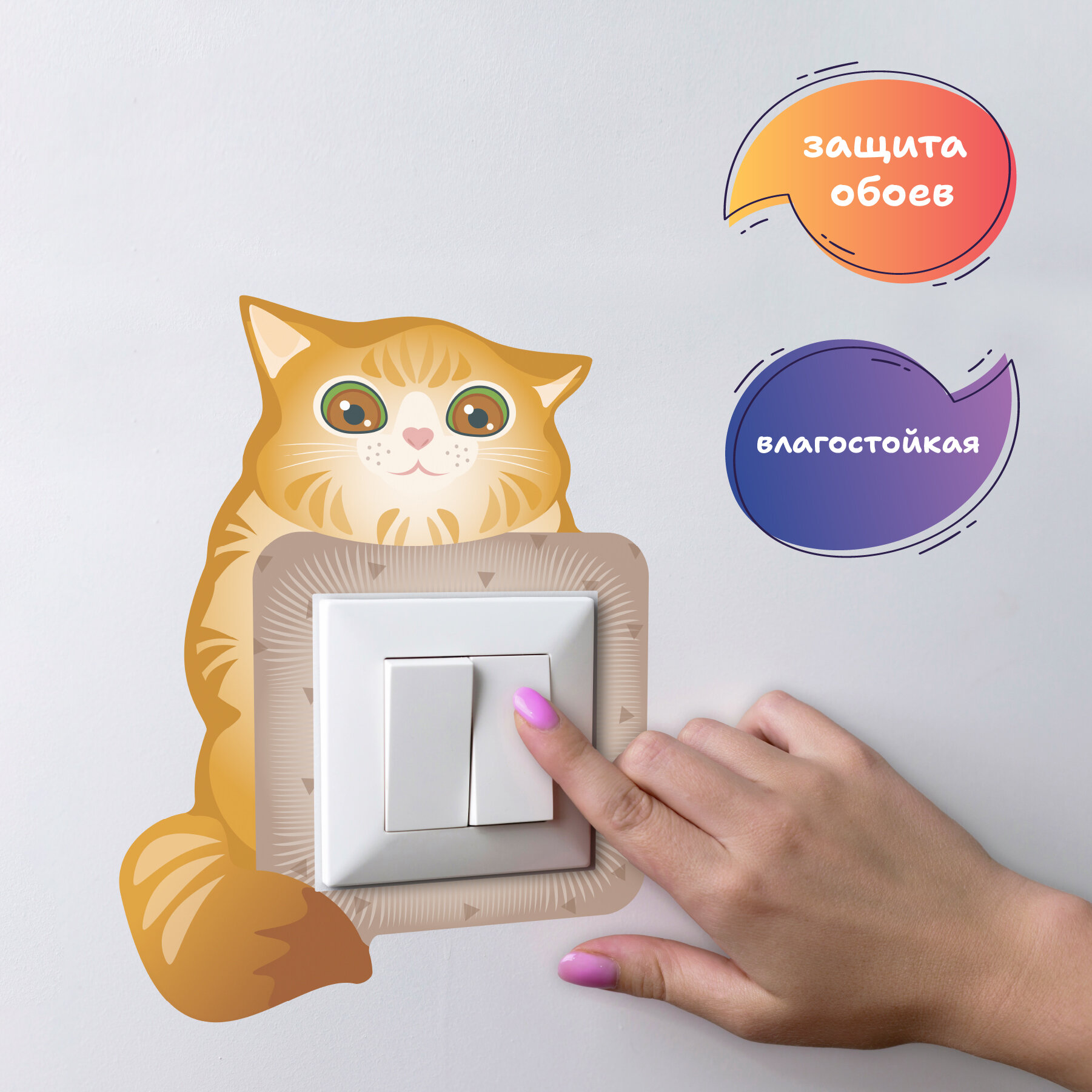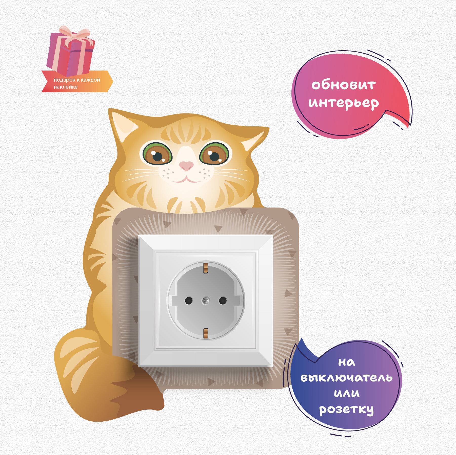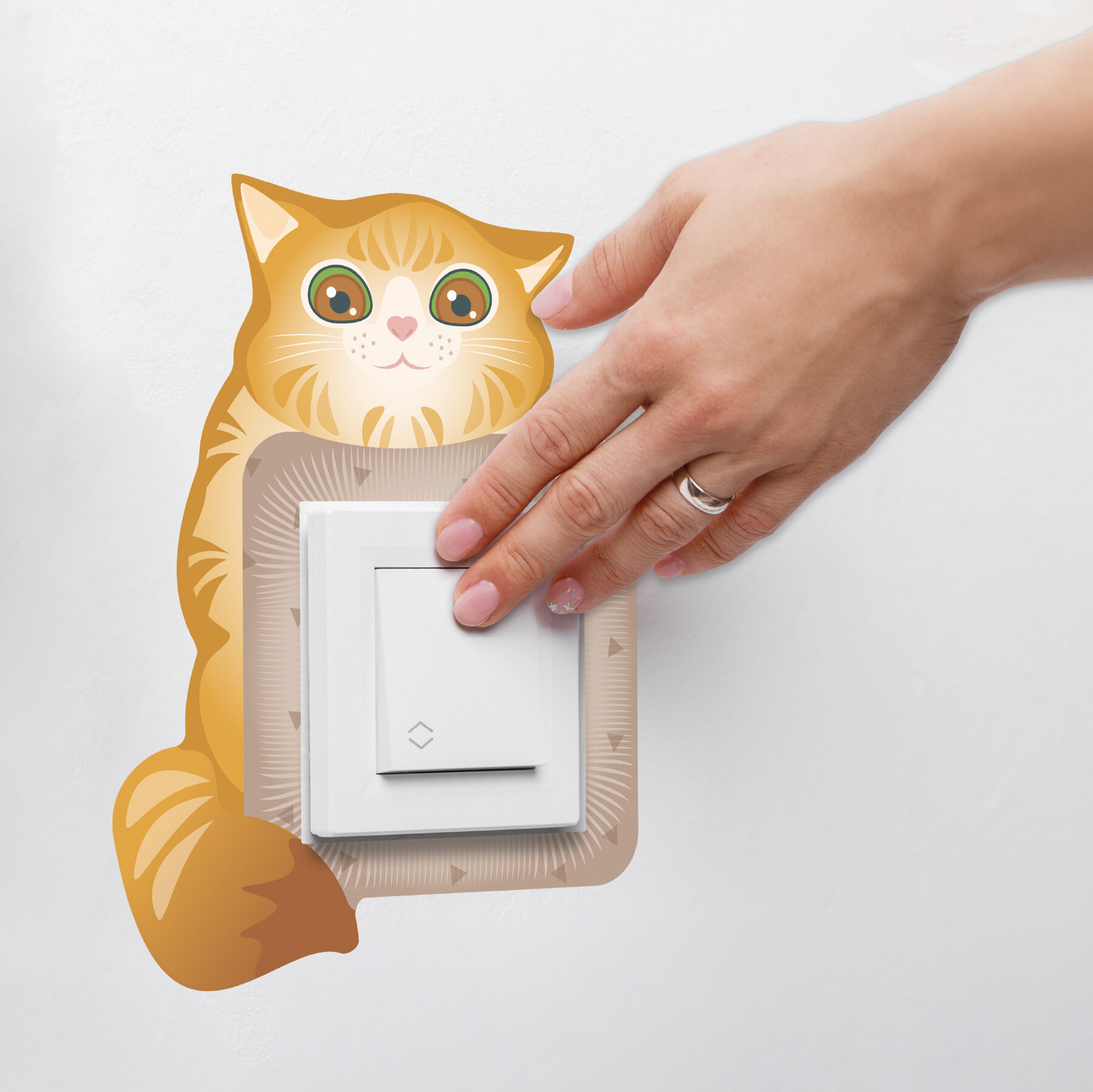 Купить Интерьерная наклейка домой на дачу, в баню, в спальню, в детскую для выключателя света или розетку рыжий кот