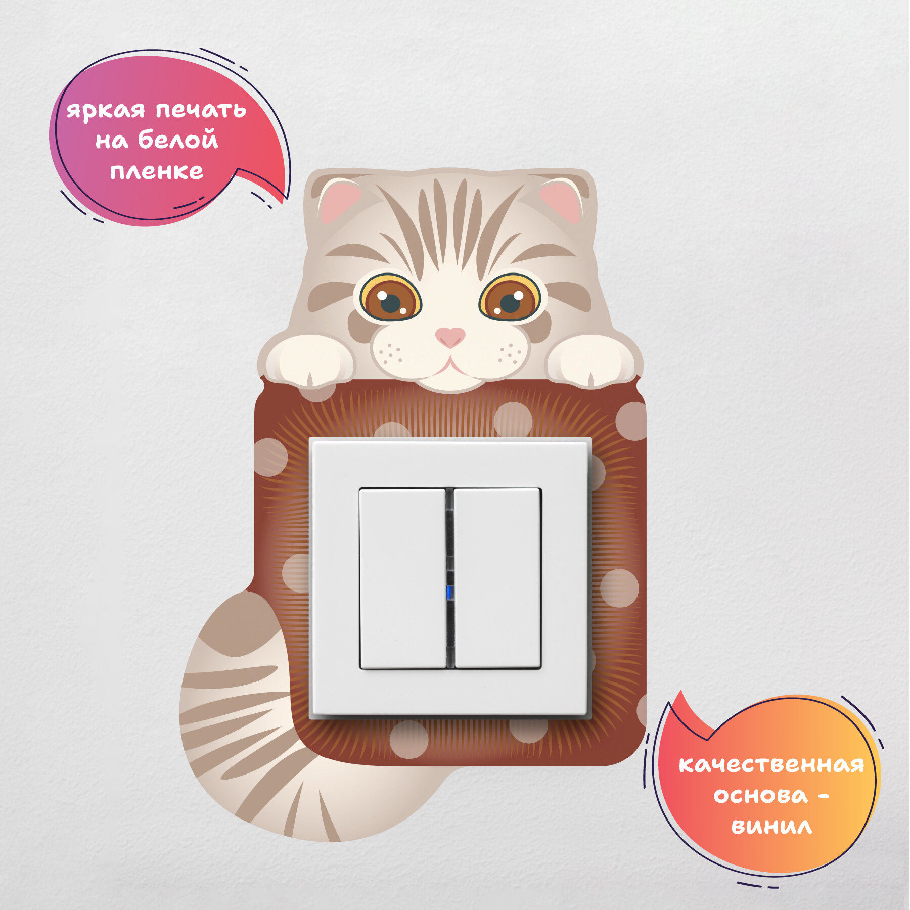 Купить Декор настенный интерьерная наклейка на выключатель и розетку в квартиру, на дачу, в дом, в детскую бежевый кот