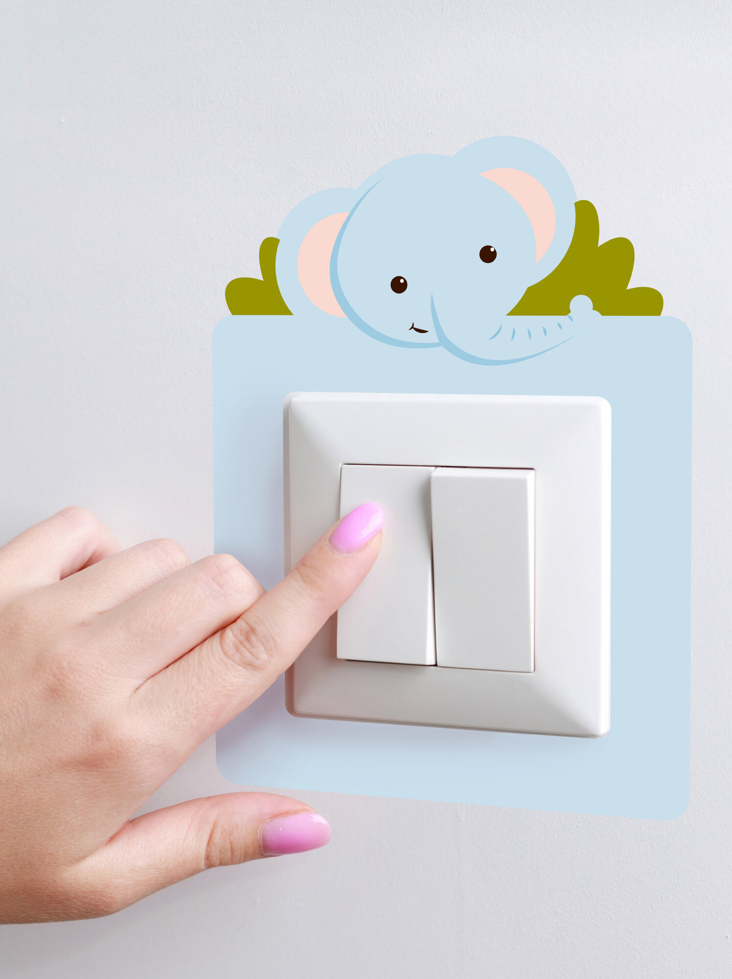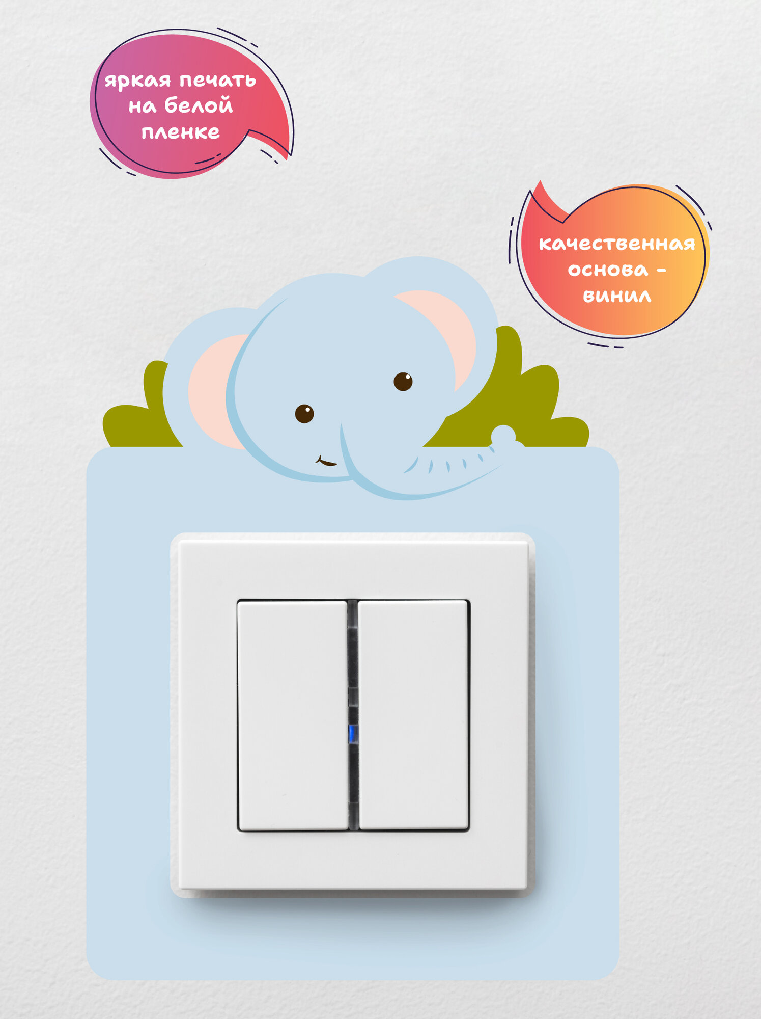 Купить Декор настенный интерьерная наклейка на выключатель и розетку в квартиру, на дачу, в дом, в детскую милый голубой слоник