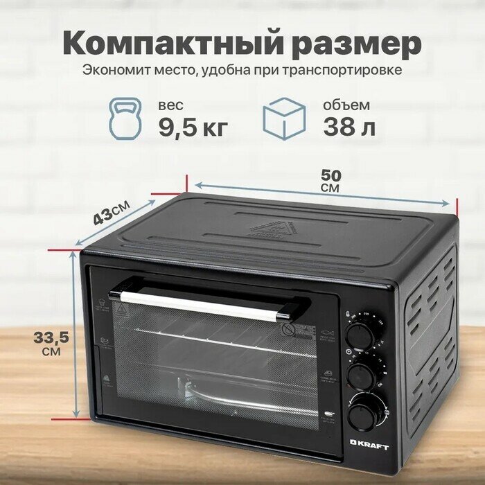 Мини-печь Kraft KF-MO 3801 BL 1500 Вт/38л/черный